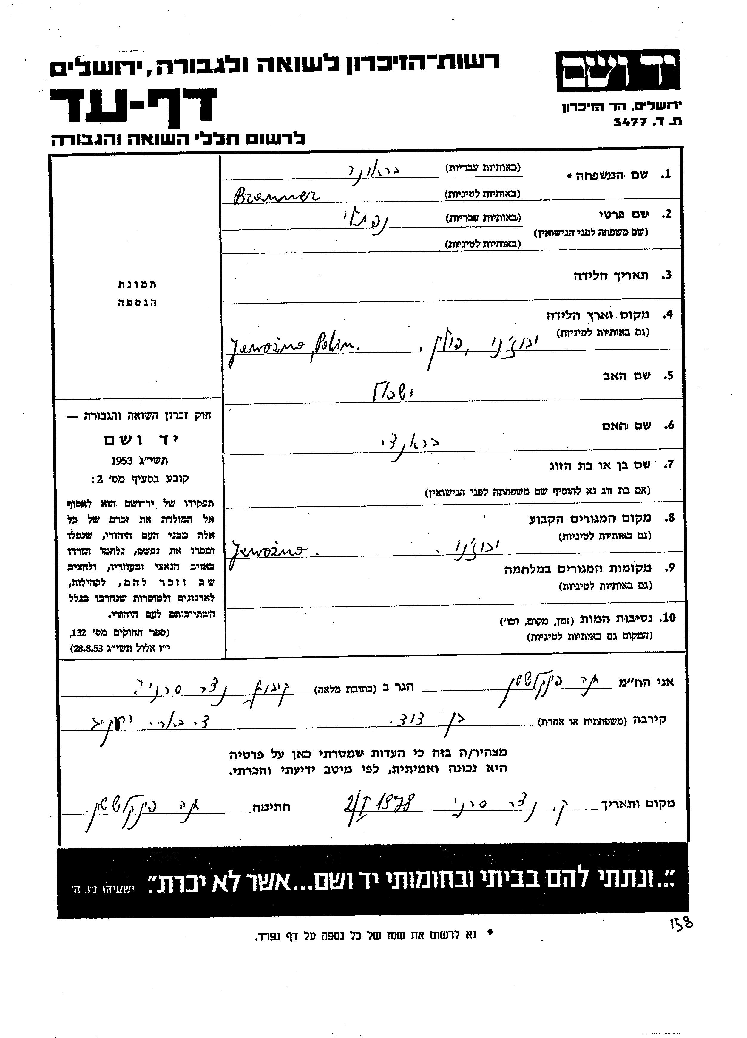 Yad Vashem - Pages of Testimony Names Memorial Collection