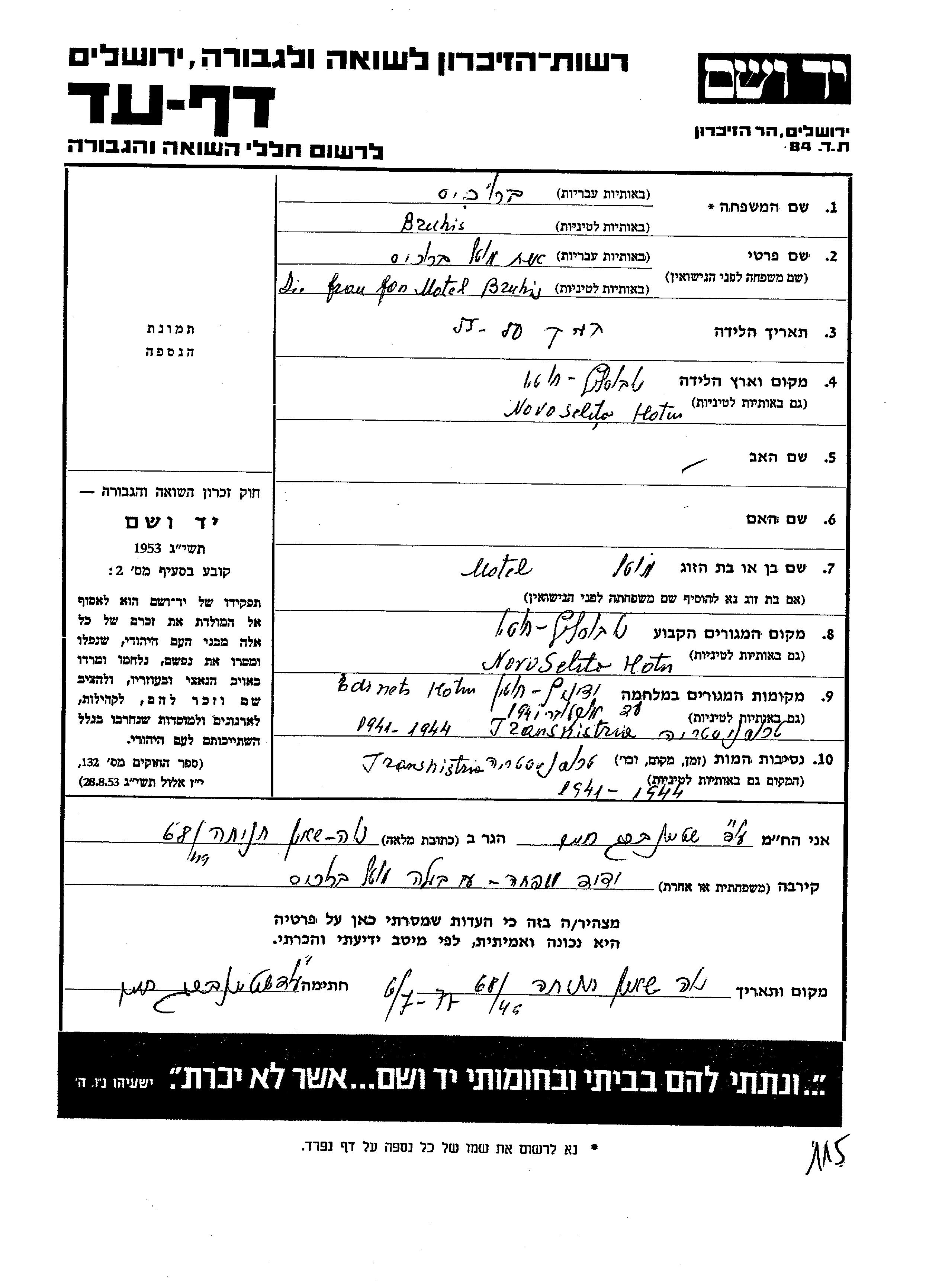 Bruhis First name unknown Novo Selitsa, Romania Page of Testimony
