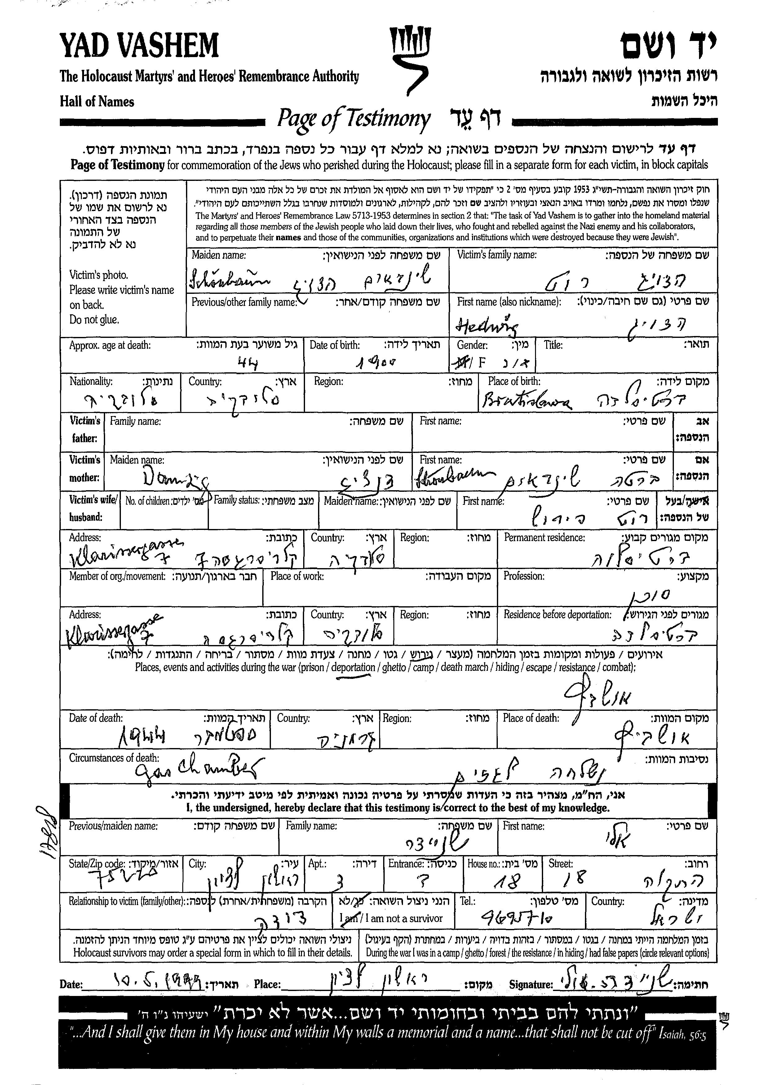 Yad Vashem - Pages of Testimony Names Memorial Collection