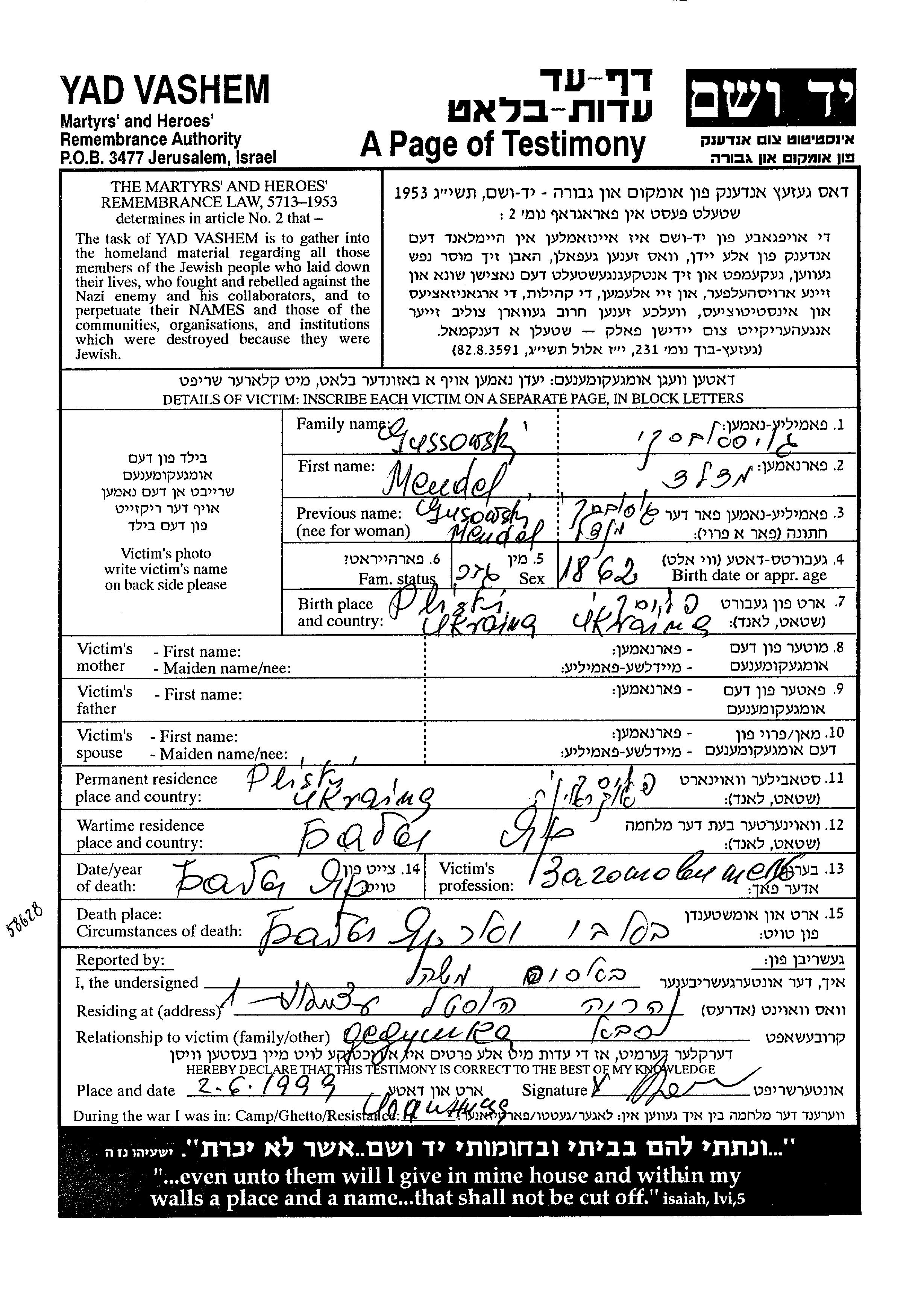 Yad Vashem - Pages of Testimony Names Memorial Collection