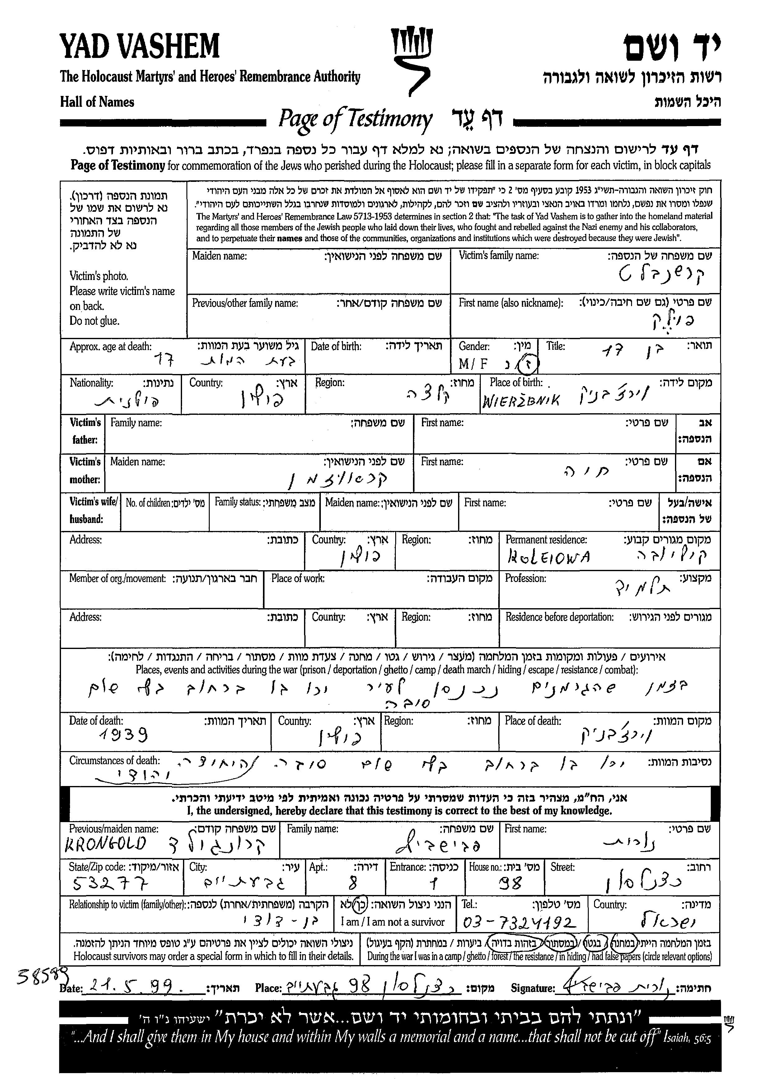 Yad Vashem - Pages of Testimony Names Memorial Collection