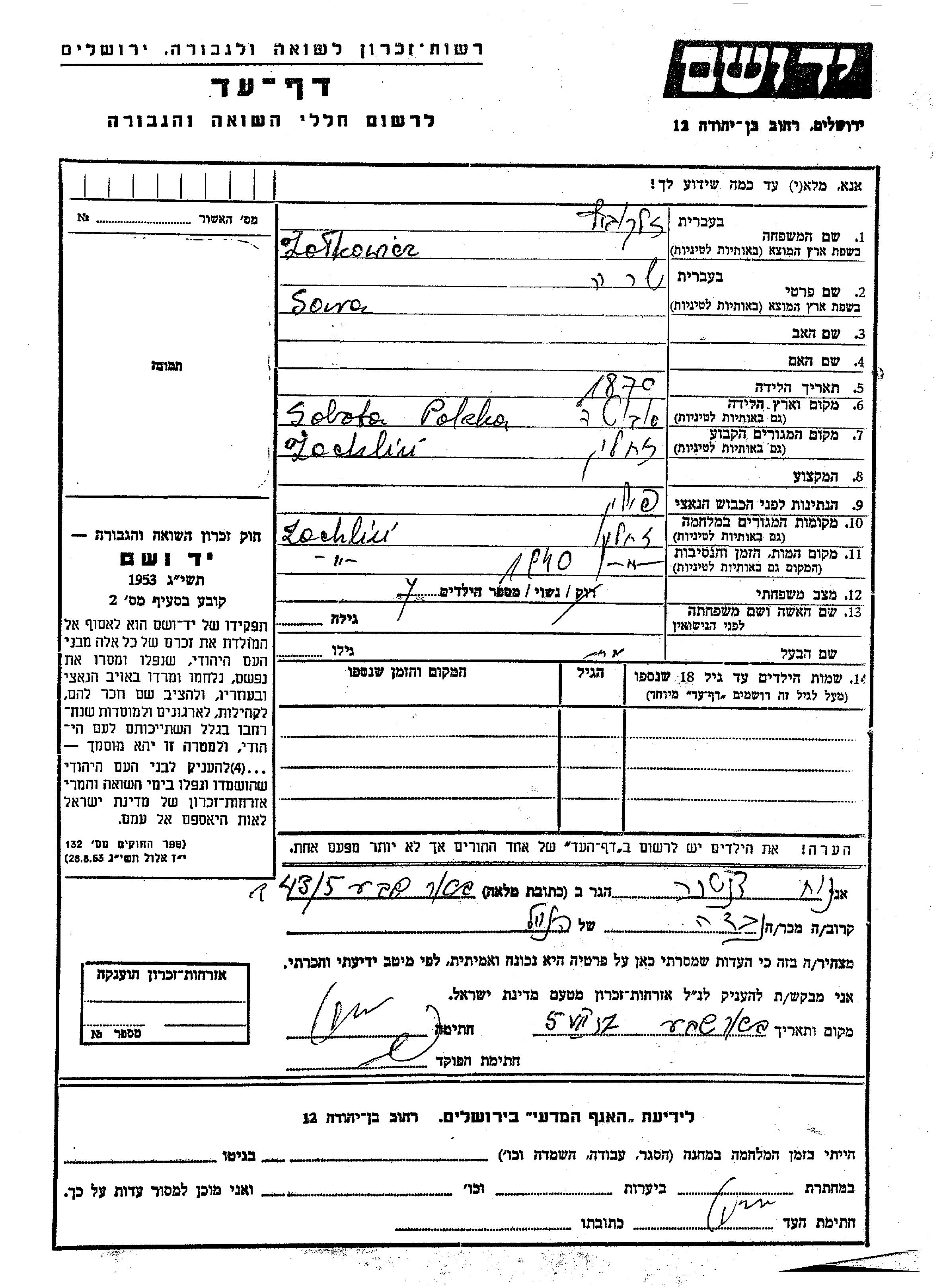 Sara Zalkowicz was born in Sobota, Poland, 1870. She was married. Prior to WWII she lived in Zychlin, Poland. During the war she was in Zychlin, Poland. Sara was murdered in the Shoah. Place of death: Zychlin, Poland, 1940.