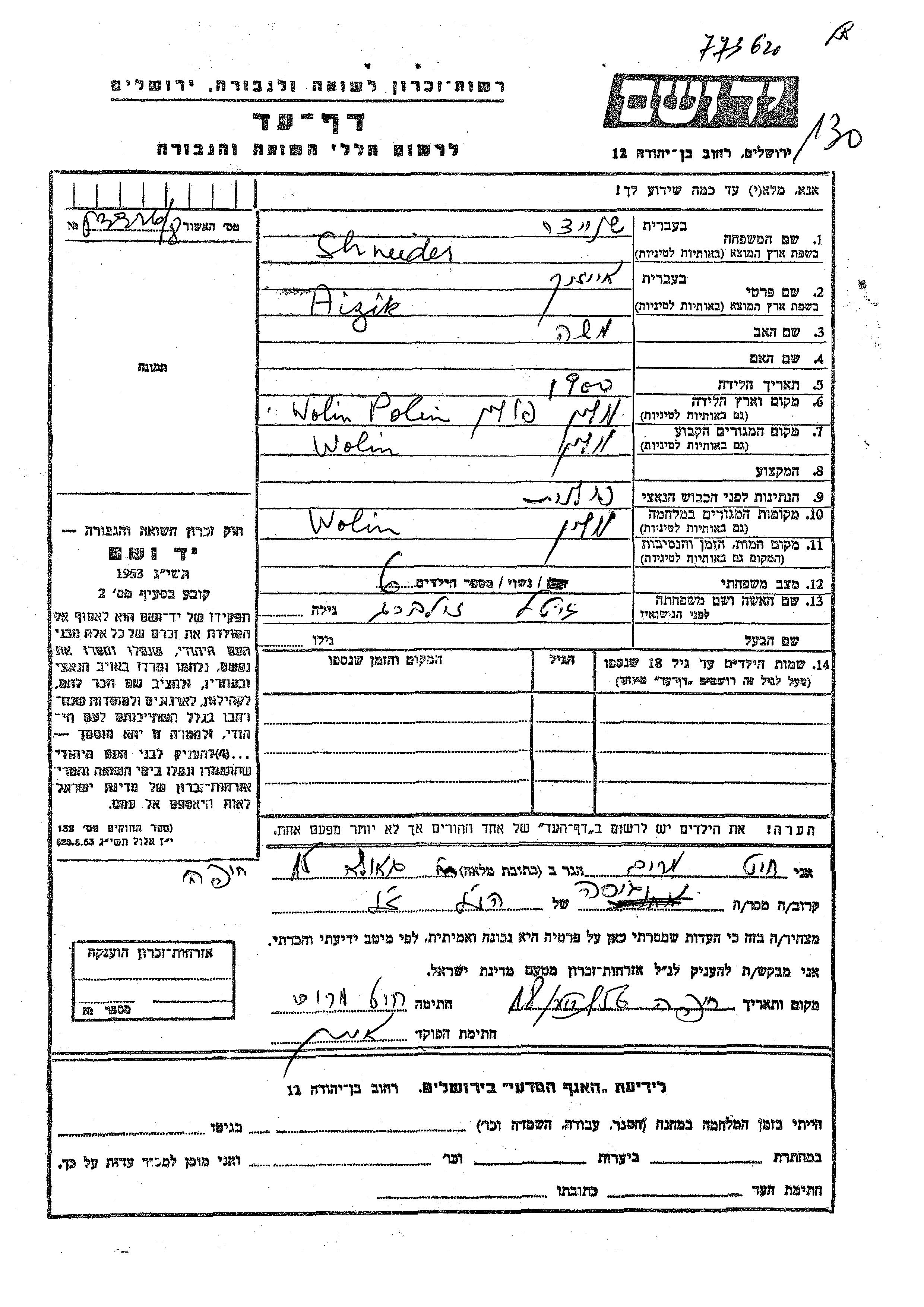 Shneider Aizik 1900 Wolin, Poland Page of Testimony