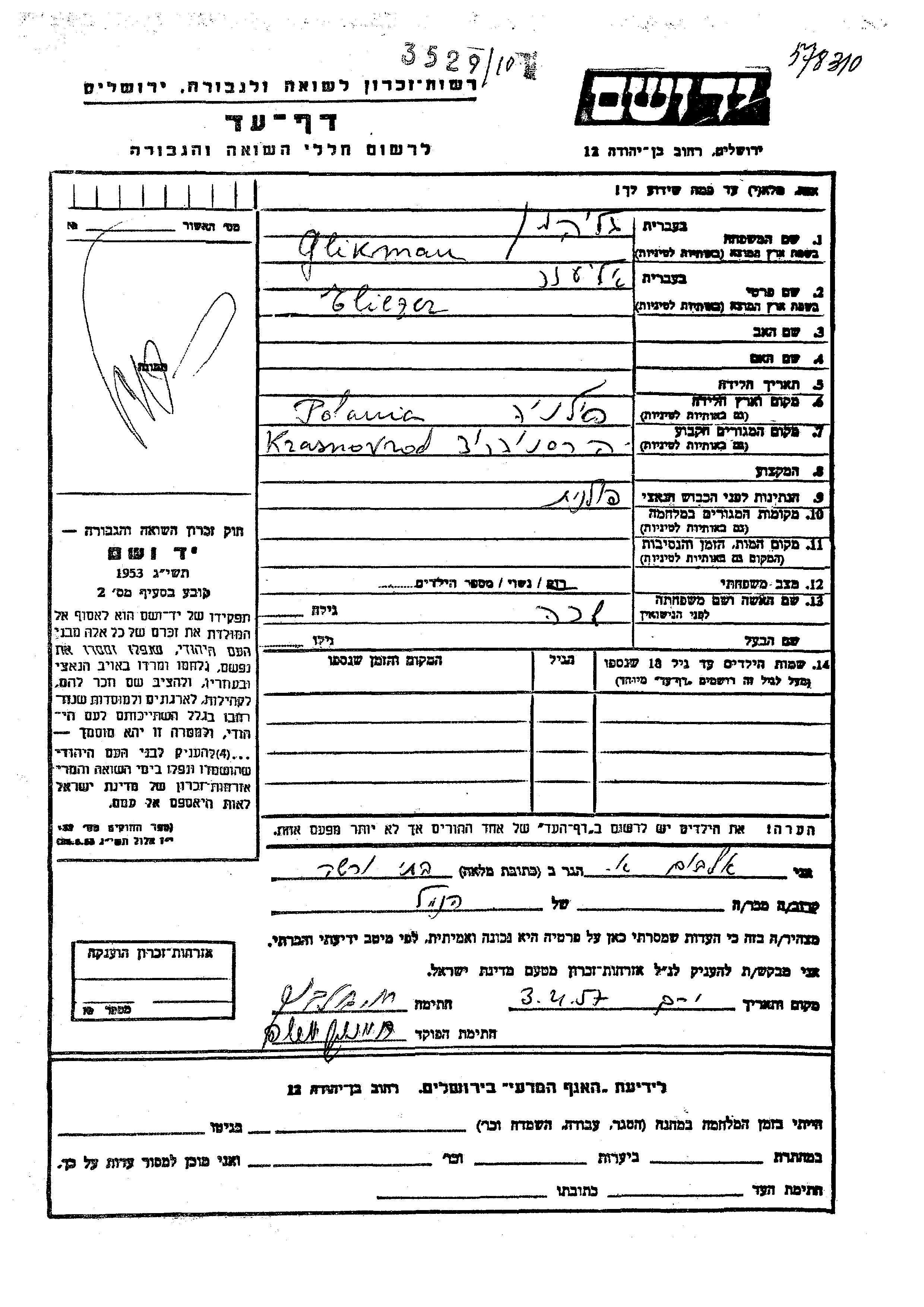 Glikman Eliezer Krasnobrod, Poland Page of Testimony