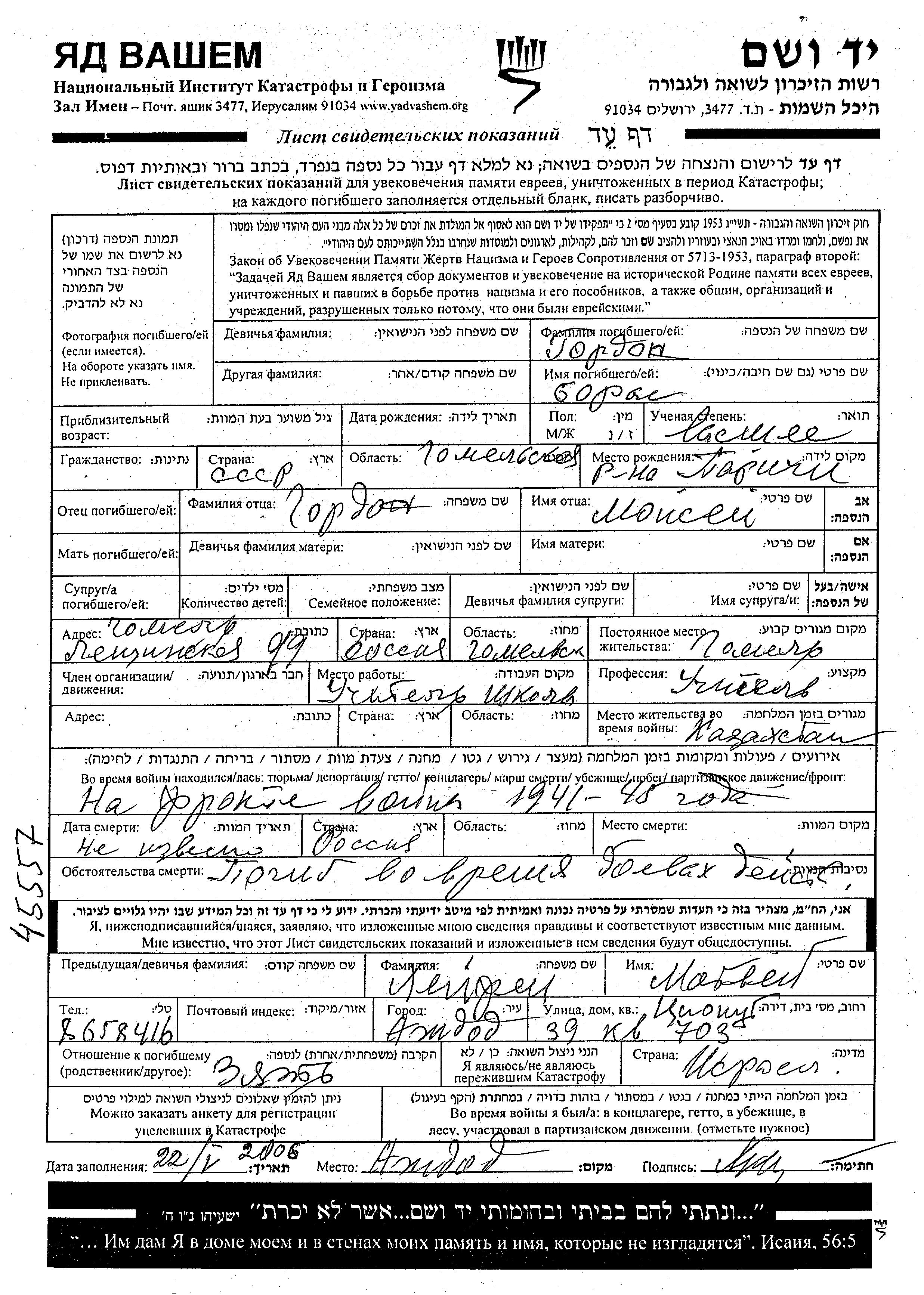 Search by last name of the submitter of the Page of Testimony, including diminutives or nicknames