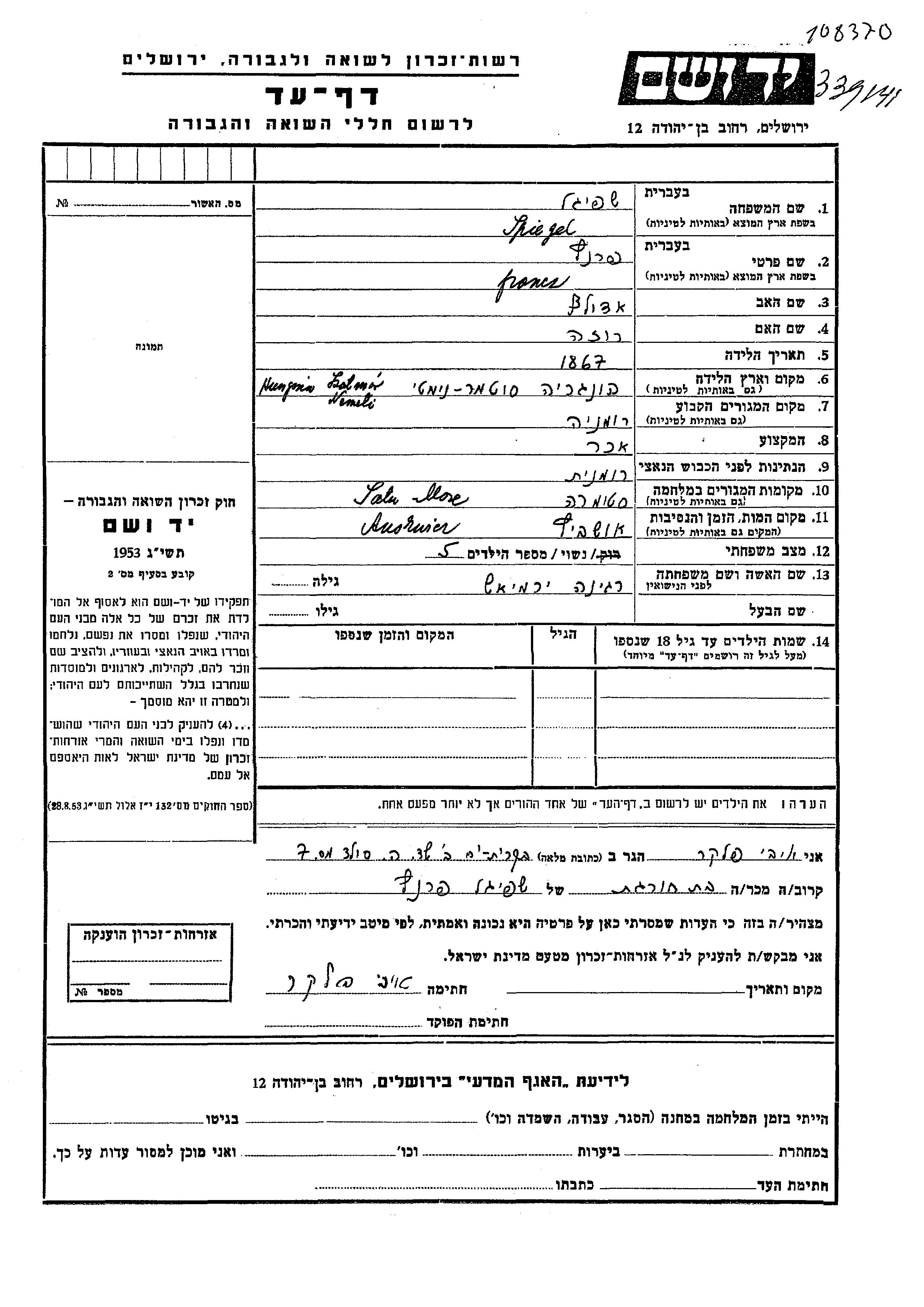 Yad Vashem - Pages of Testimony Names Memorial Collection