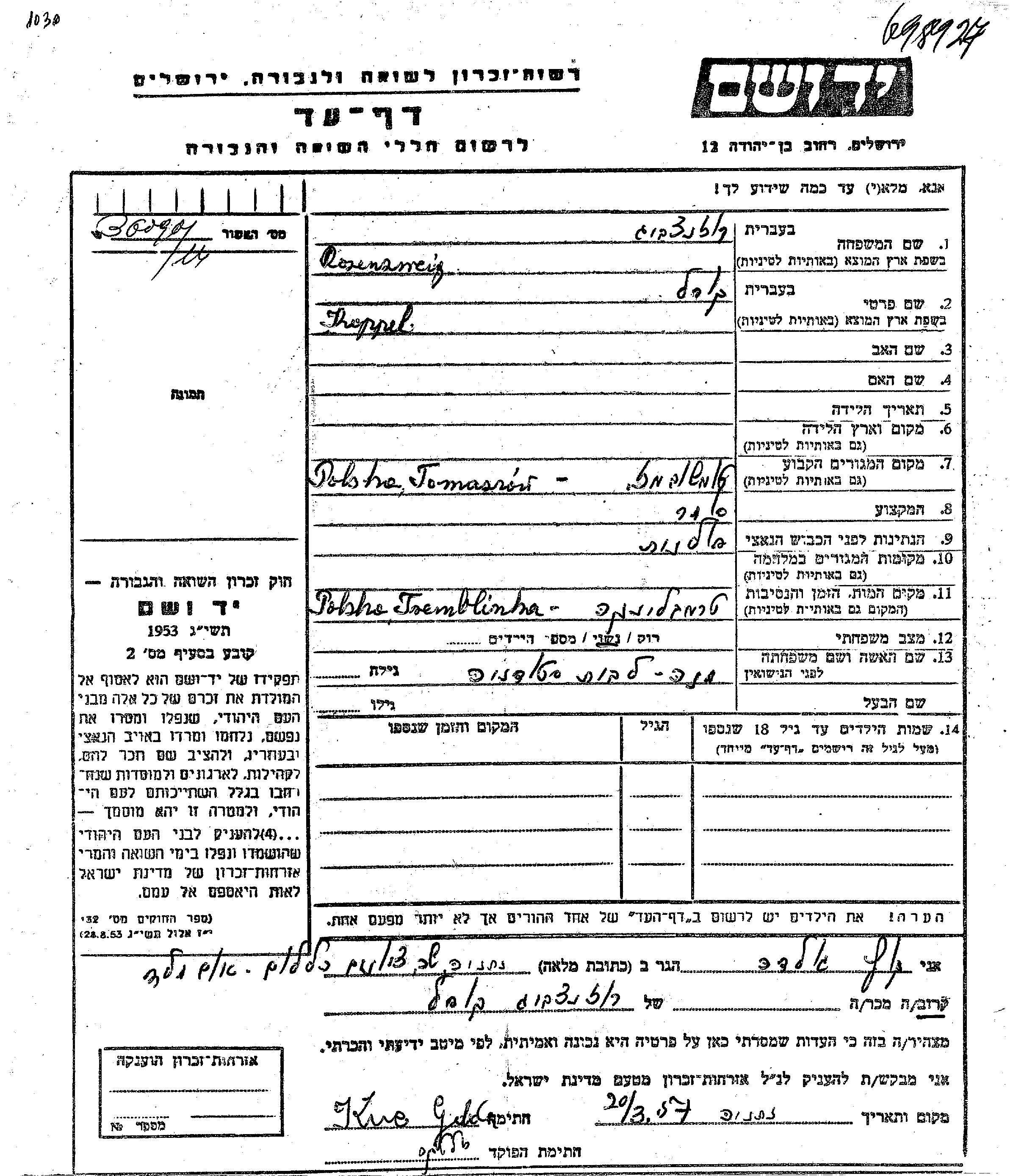 Search by name of Prewar permanent residence, Town, Village, District, Region or Country.