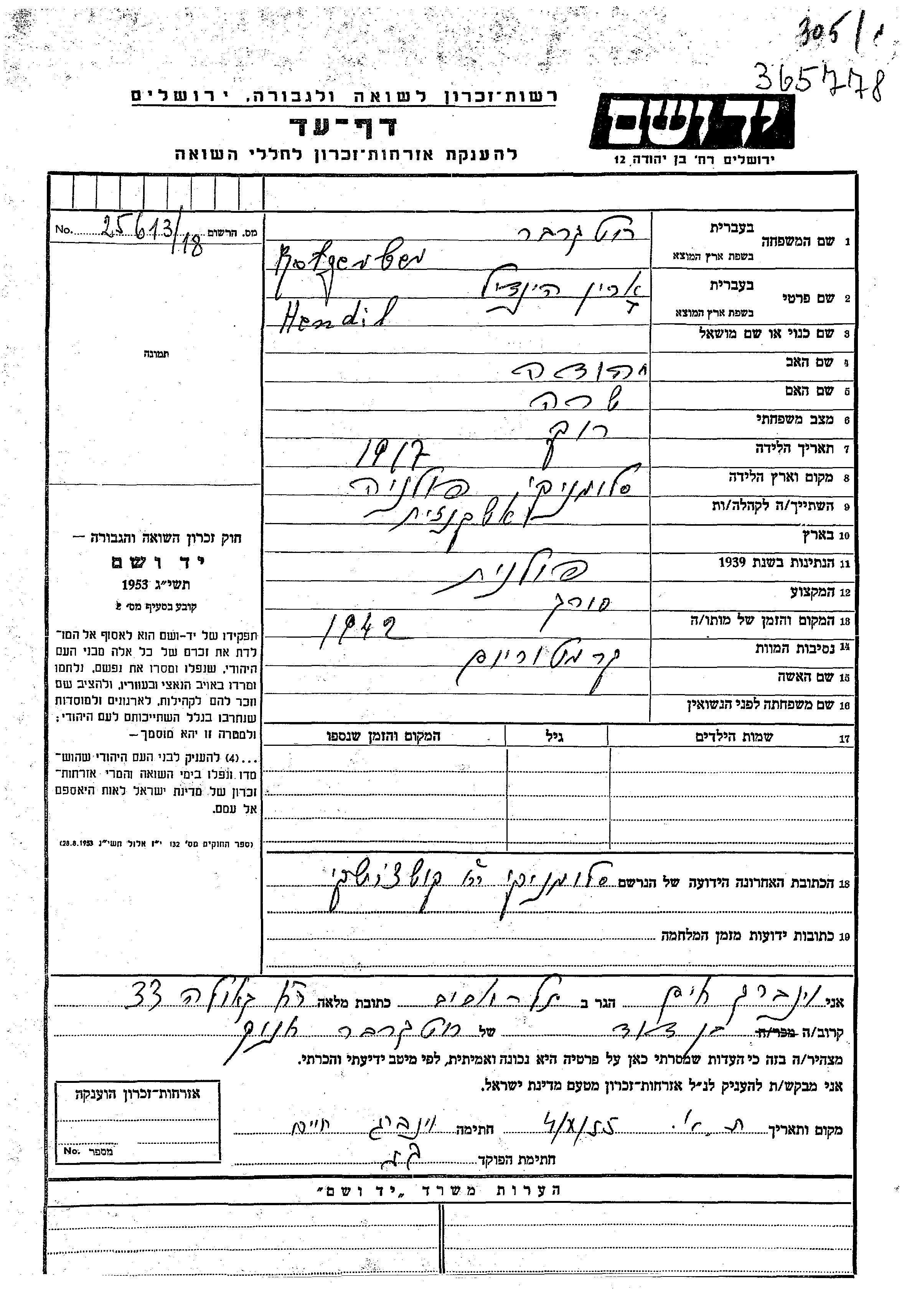 Yad Vashem - Pages of Testimony Names Memorial Collection