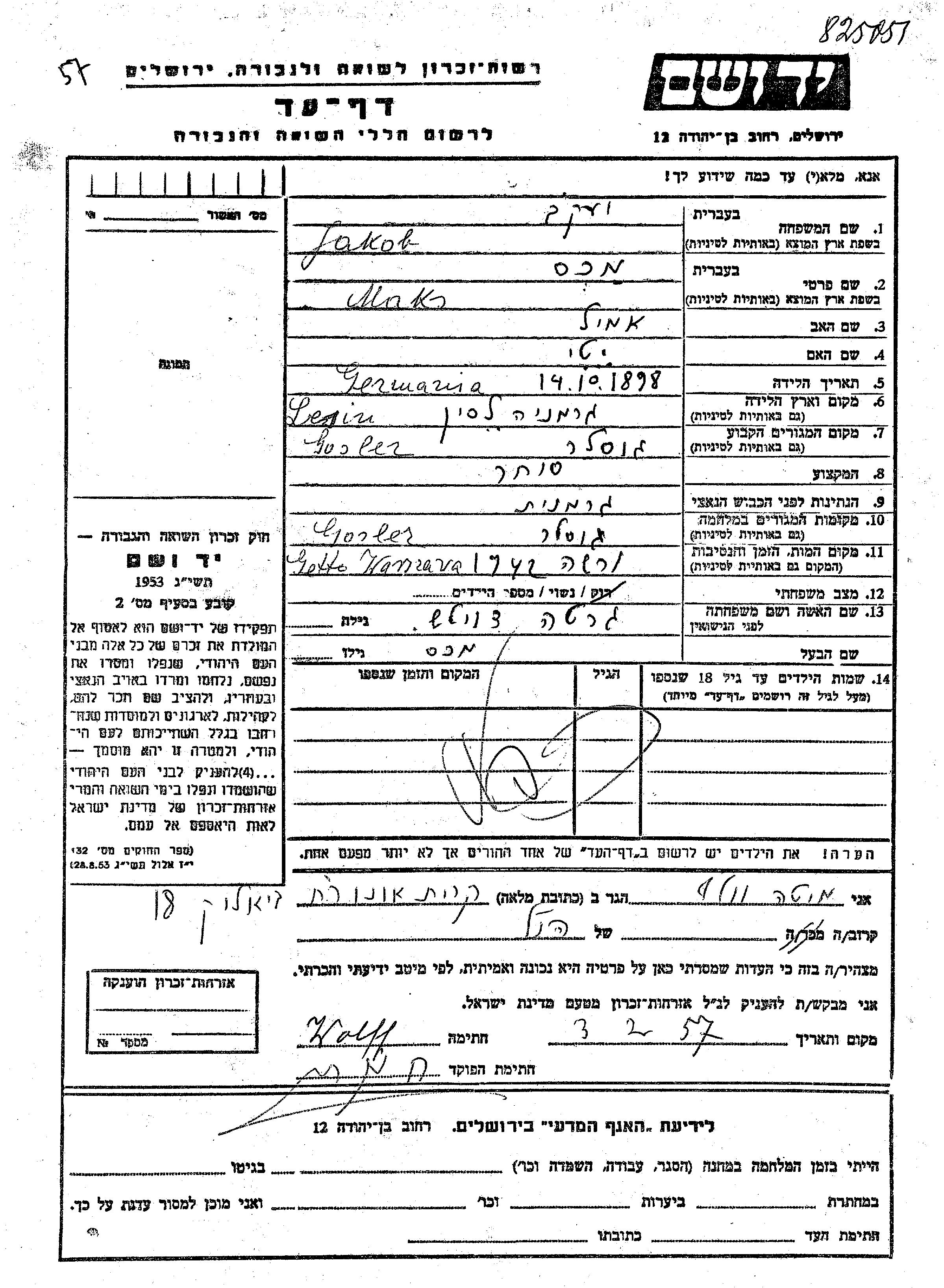 Max Yakob was born in Lasin, Poland, 1898 to Emil and Eti. He was a merchant and married to Greta nee Deutsch. Prior to WWII he lived in Goslar, Germany. During the war he was in Goslar, Germany. Max was murdered in the Shoah. Place of death: Warszawa, Poland, 1942.