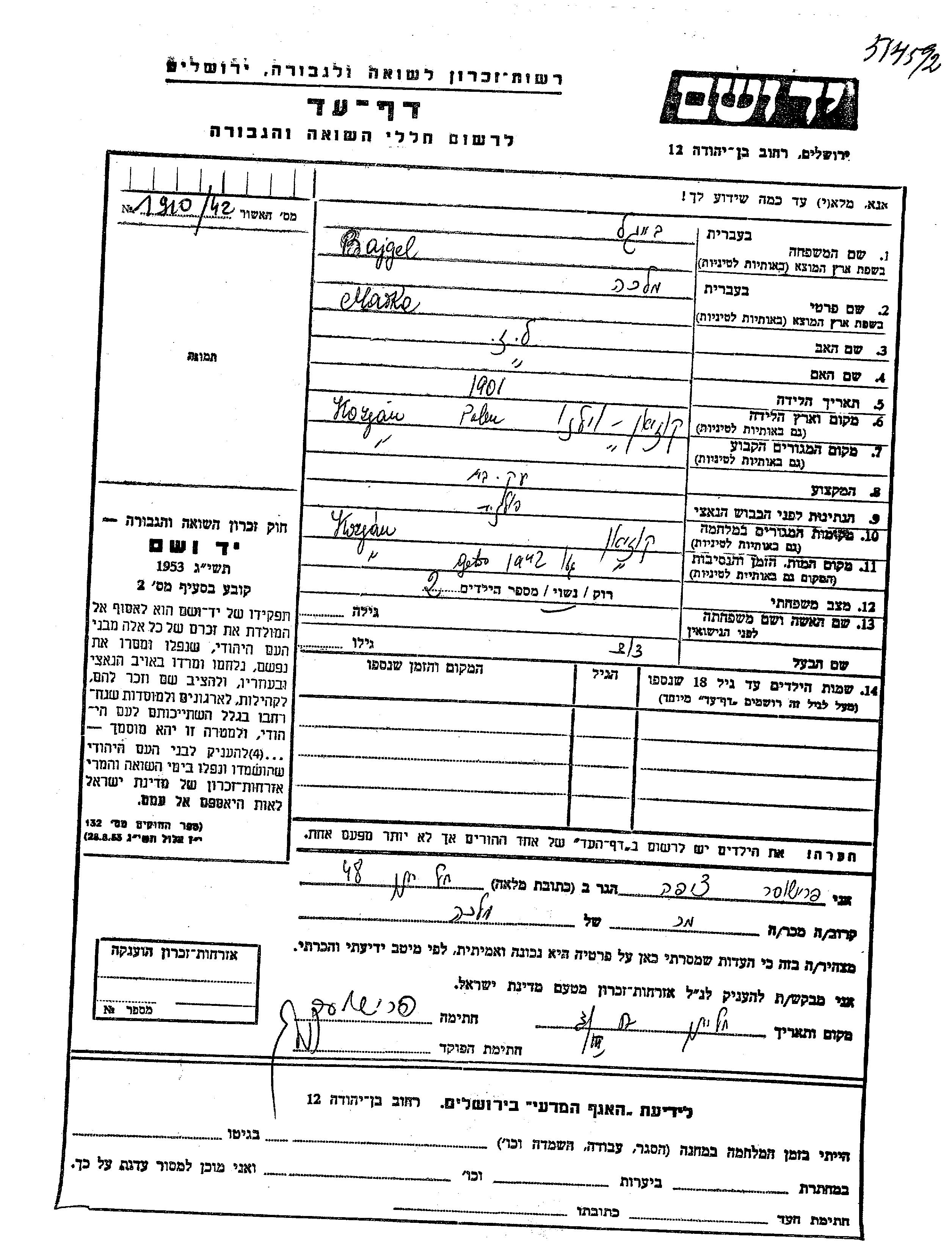 Yad Vashem - Pages of Testimony Names Memorial Collection