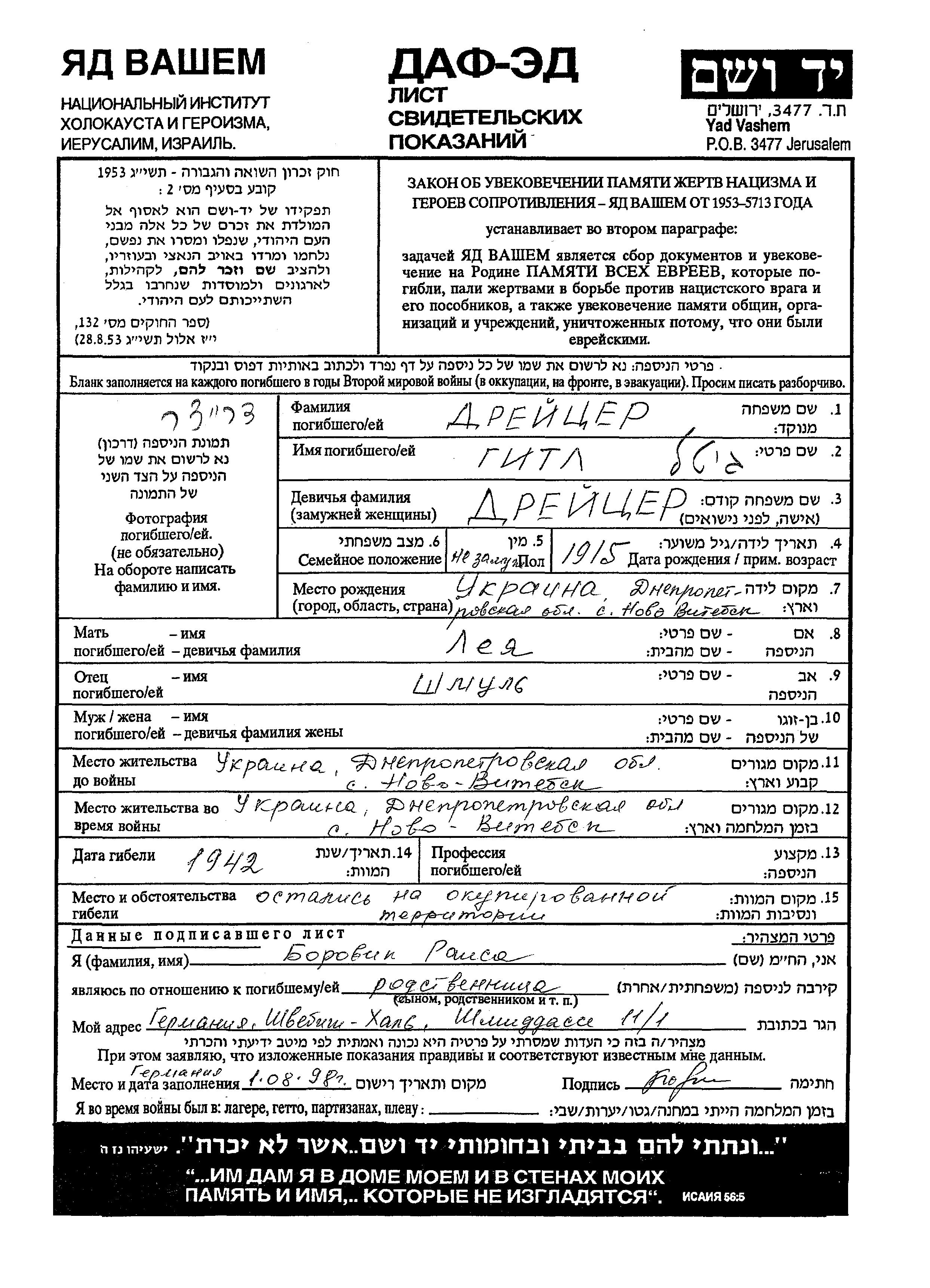 Yad Vashem - Pages of Testimony Names Memorial Collection