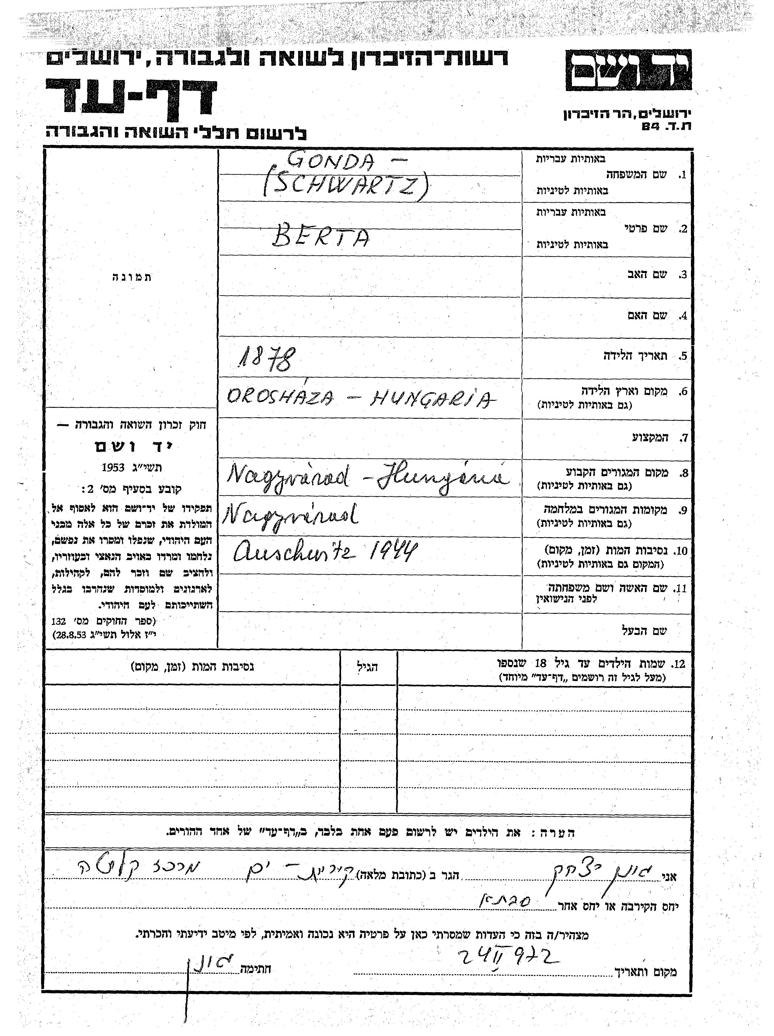 Gonda Berta 1878 Nagyvarad, Romania Page of Testimony