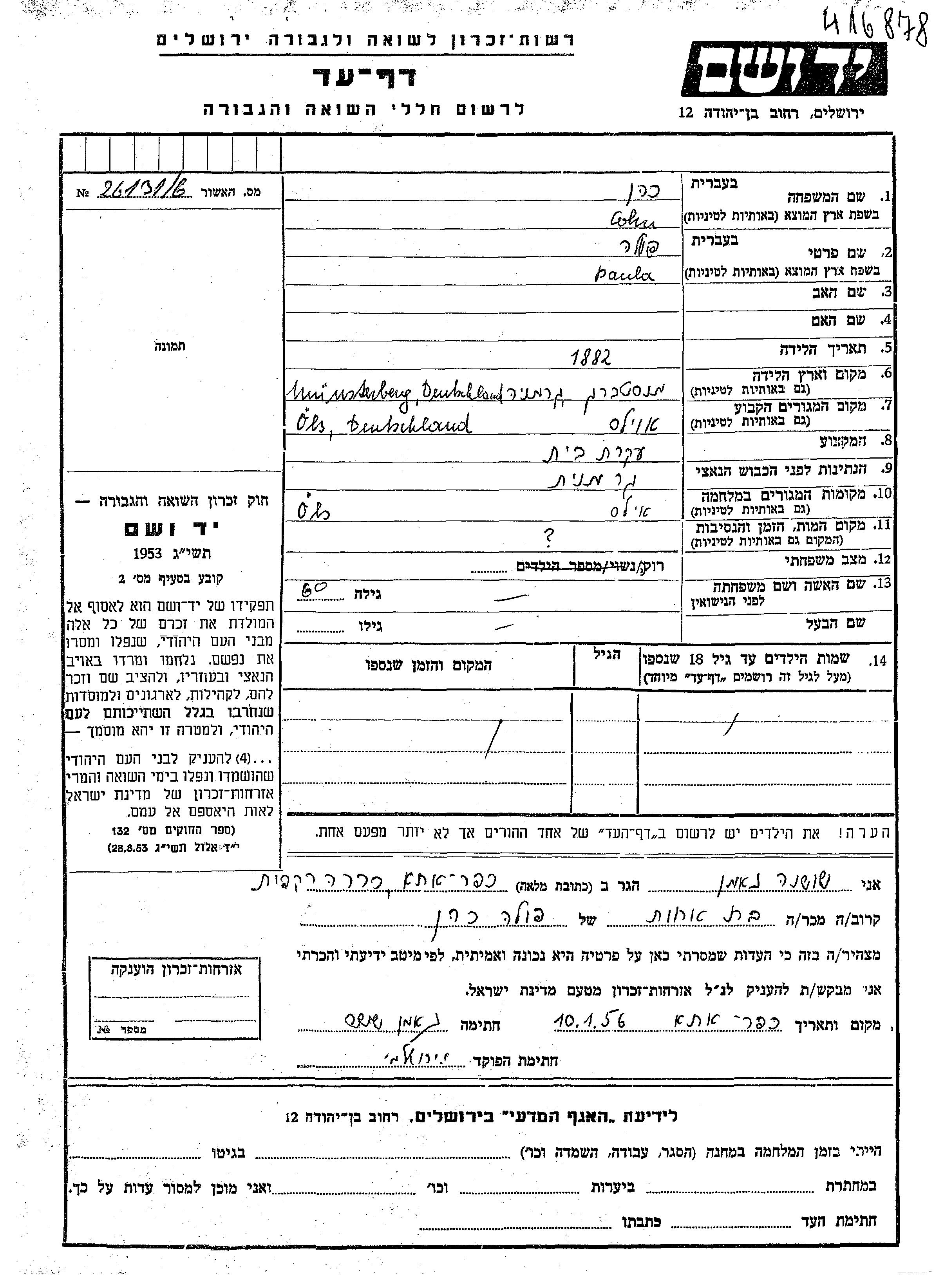 Yad Vashem - Pages of Testimony Names Memorial Collection