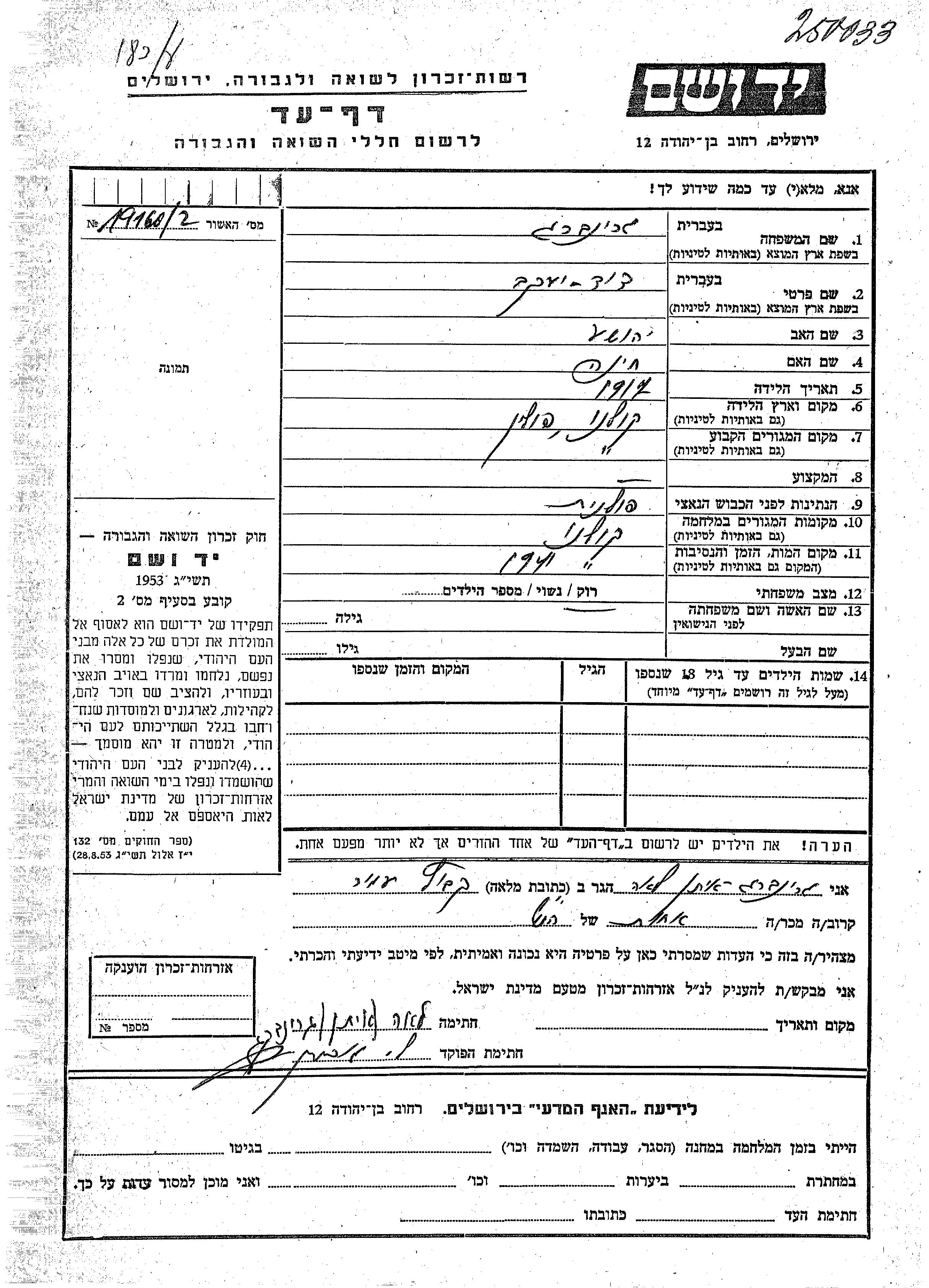 David Yaakov Grinberg was born in Kolno, Poland, 1917 to Yehoshua and Khina. He was single. Prior to WWII he lived in Kolno, Poland. During the war he was in Kolno, Poland. David Yaakov was murdered in the Shoah. Place of death: Kolno, Poland, 1941.