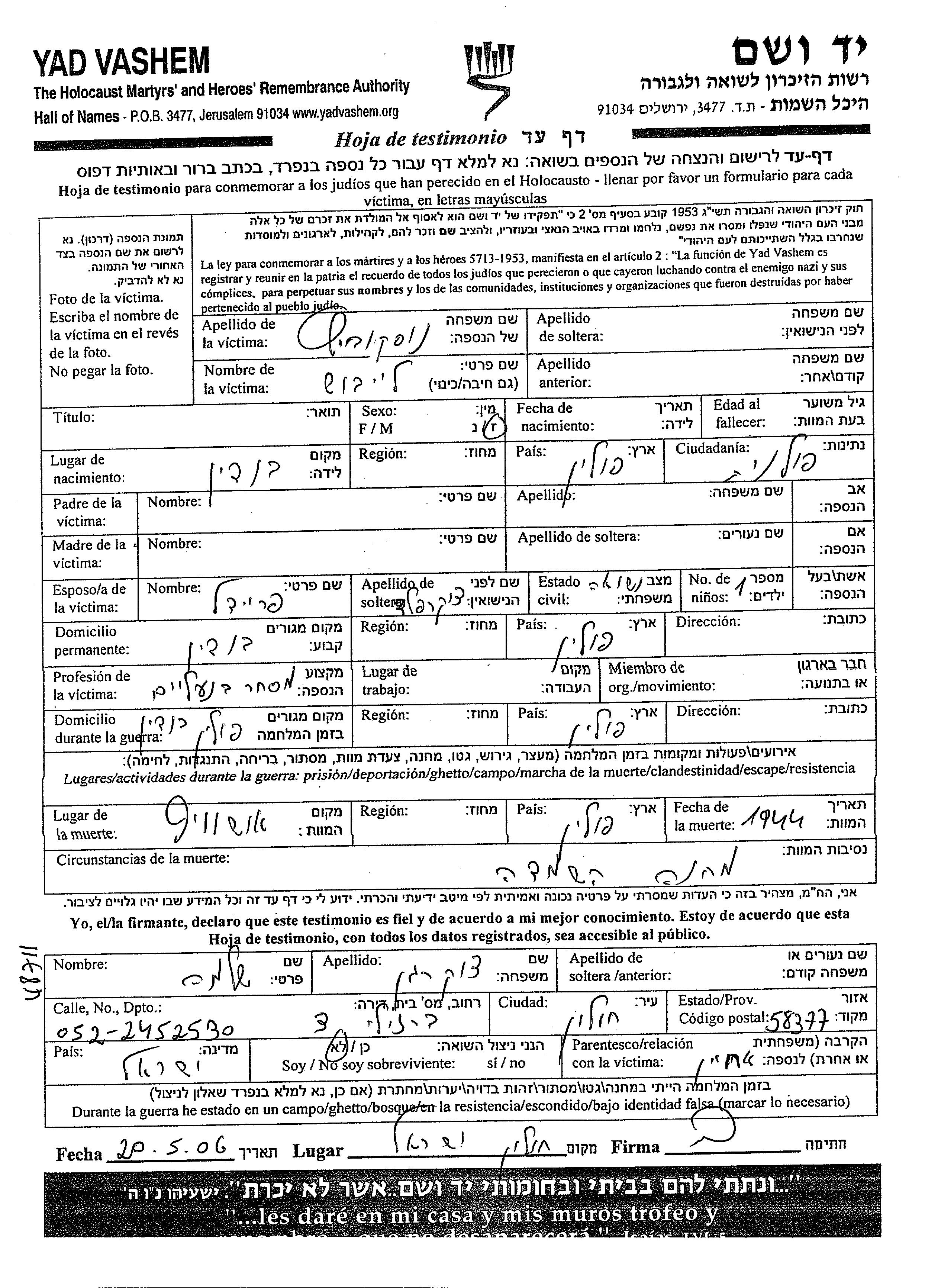Yad Vashem - Pages of Testimony Names Memorial Collection