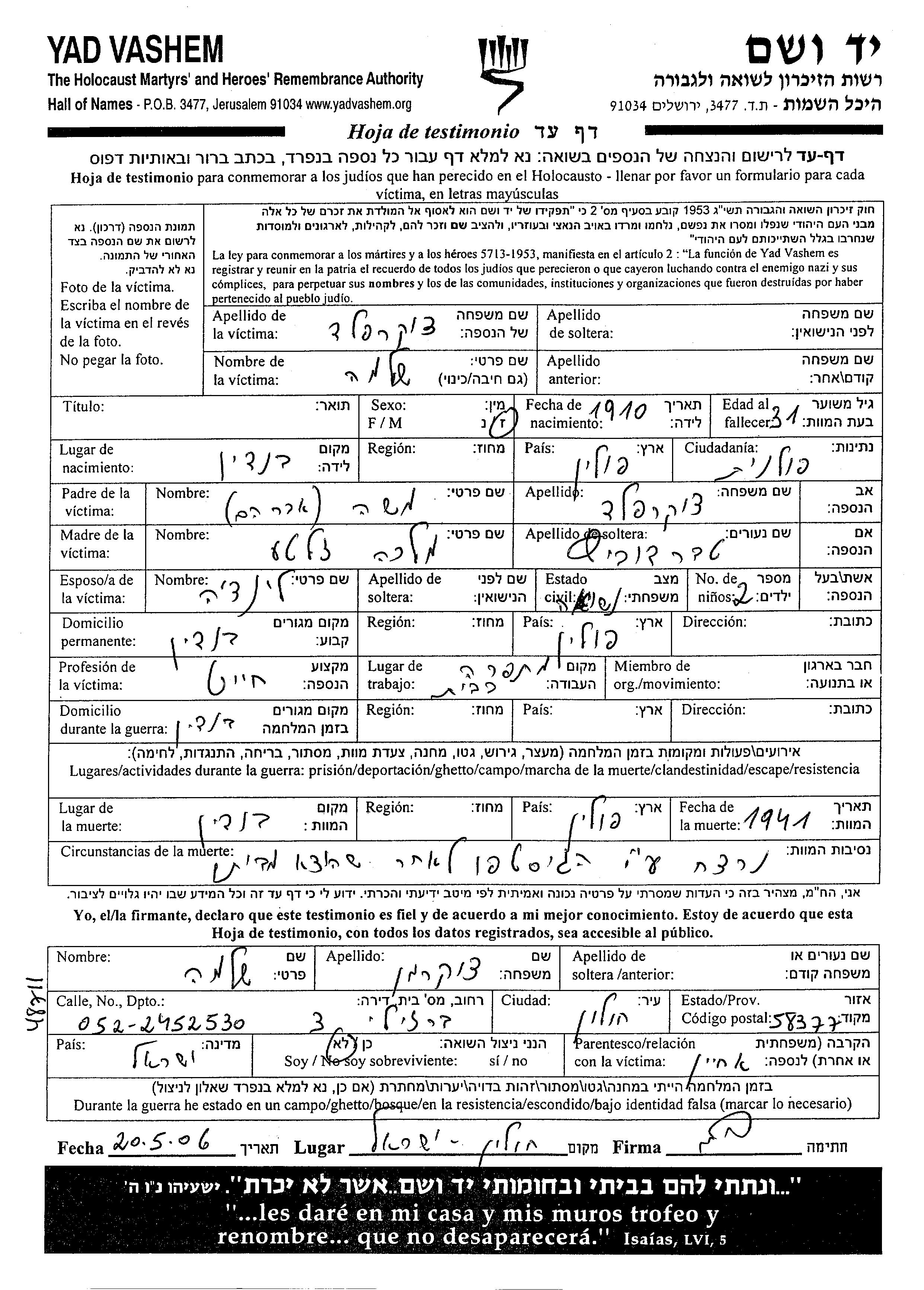 Yad Vashem - Pages of Testimony Names Memorial Collection