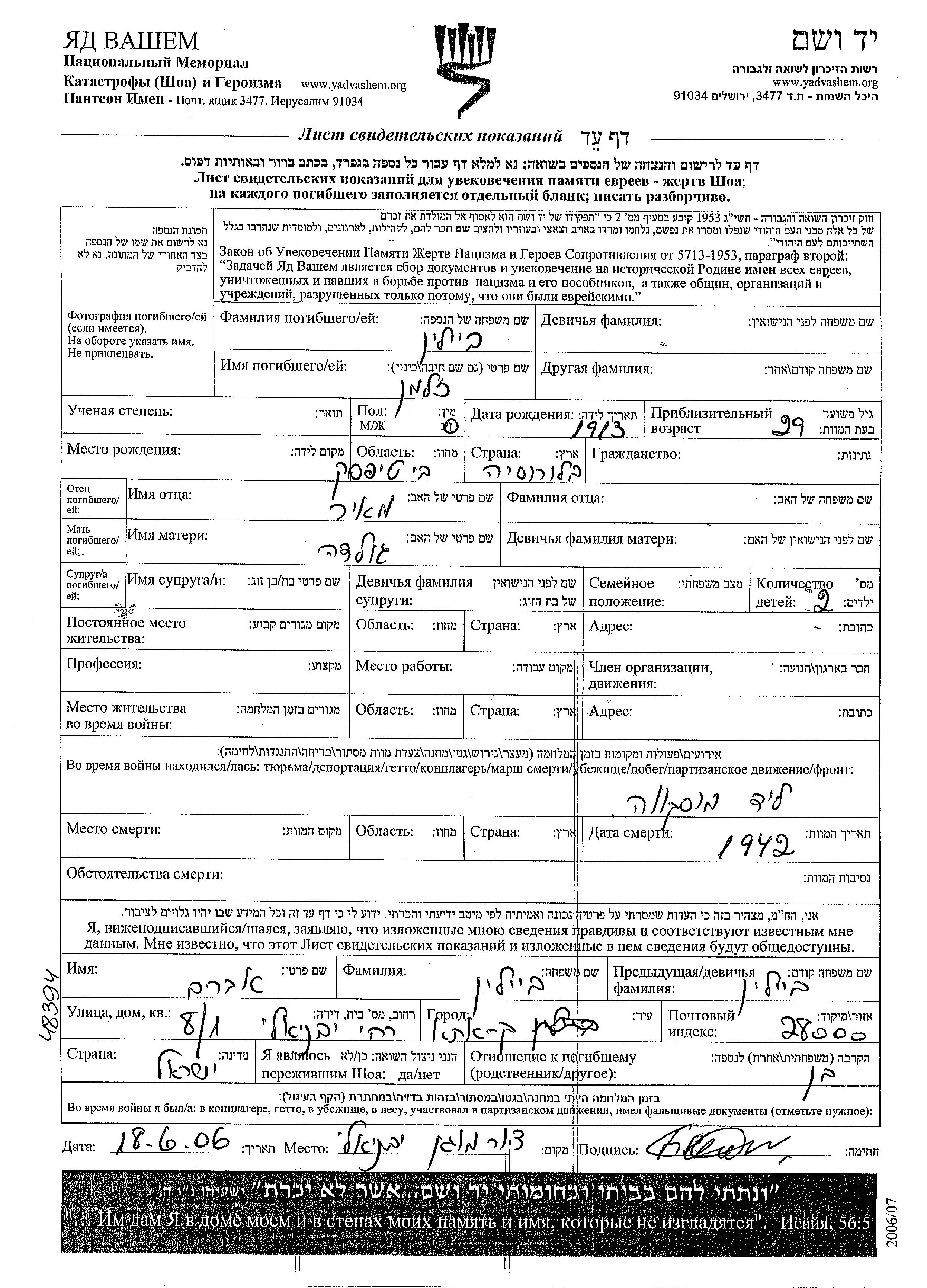 Yad Vashem - Pages of Testimony Names Memorial Collection