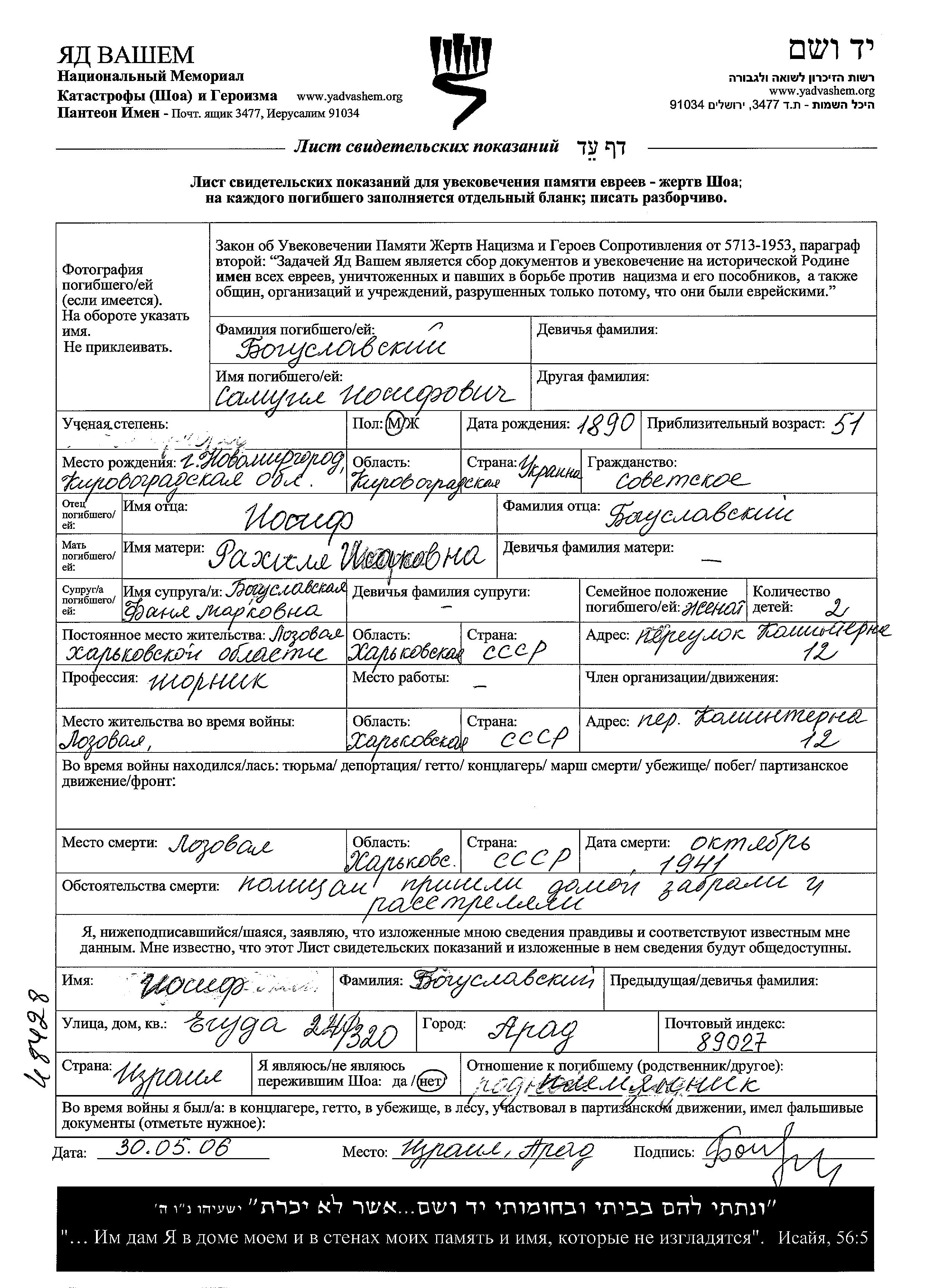 Boguslavski Samuil 1890 Lozovaya, Ukraine (USSR) Page of Testimony