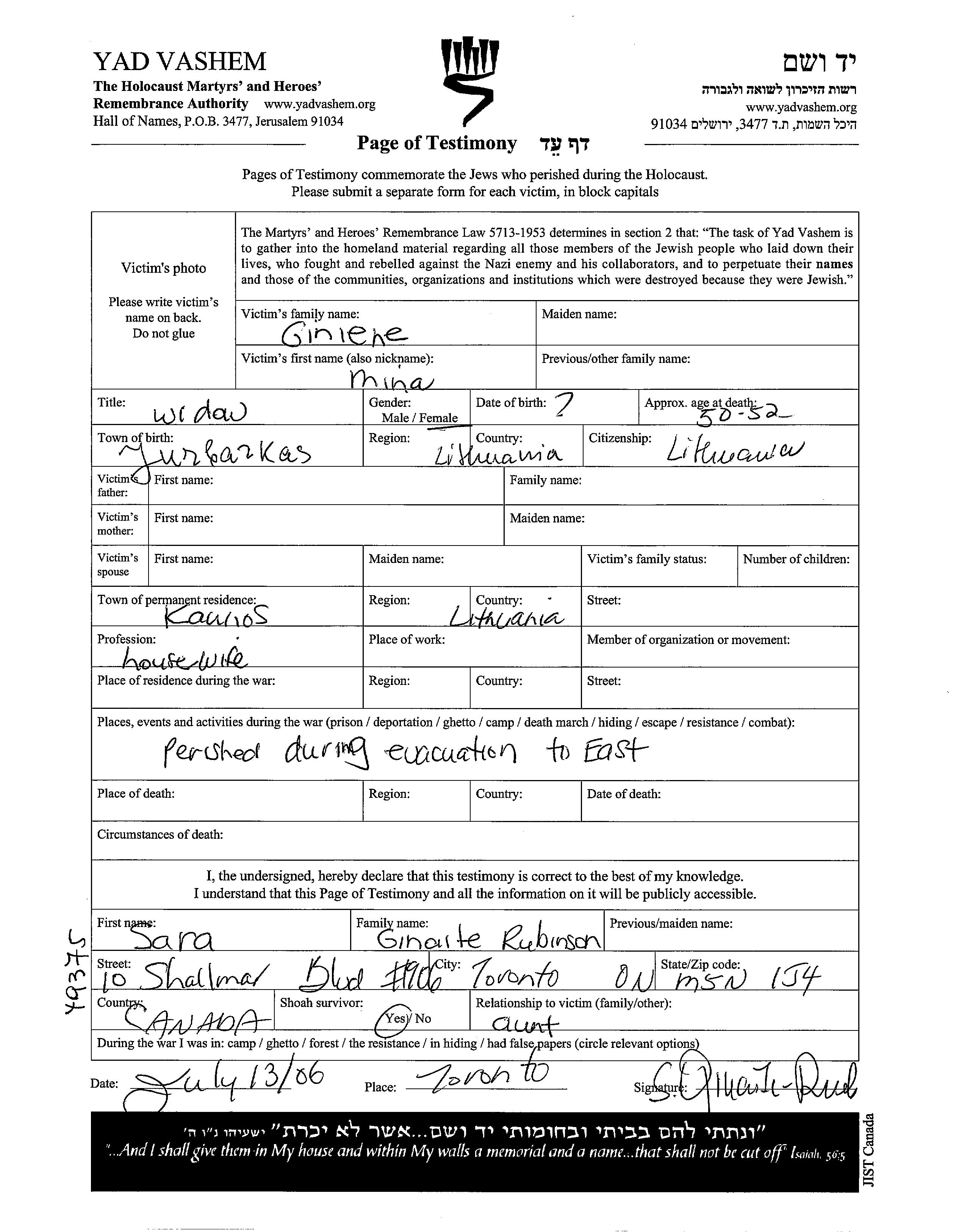 Search by last name of the submitter of the Page of Testimony, including diminutives or nicknames