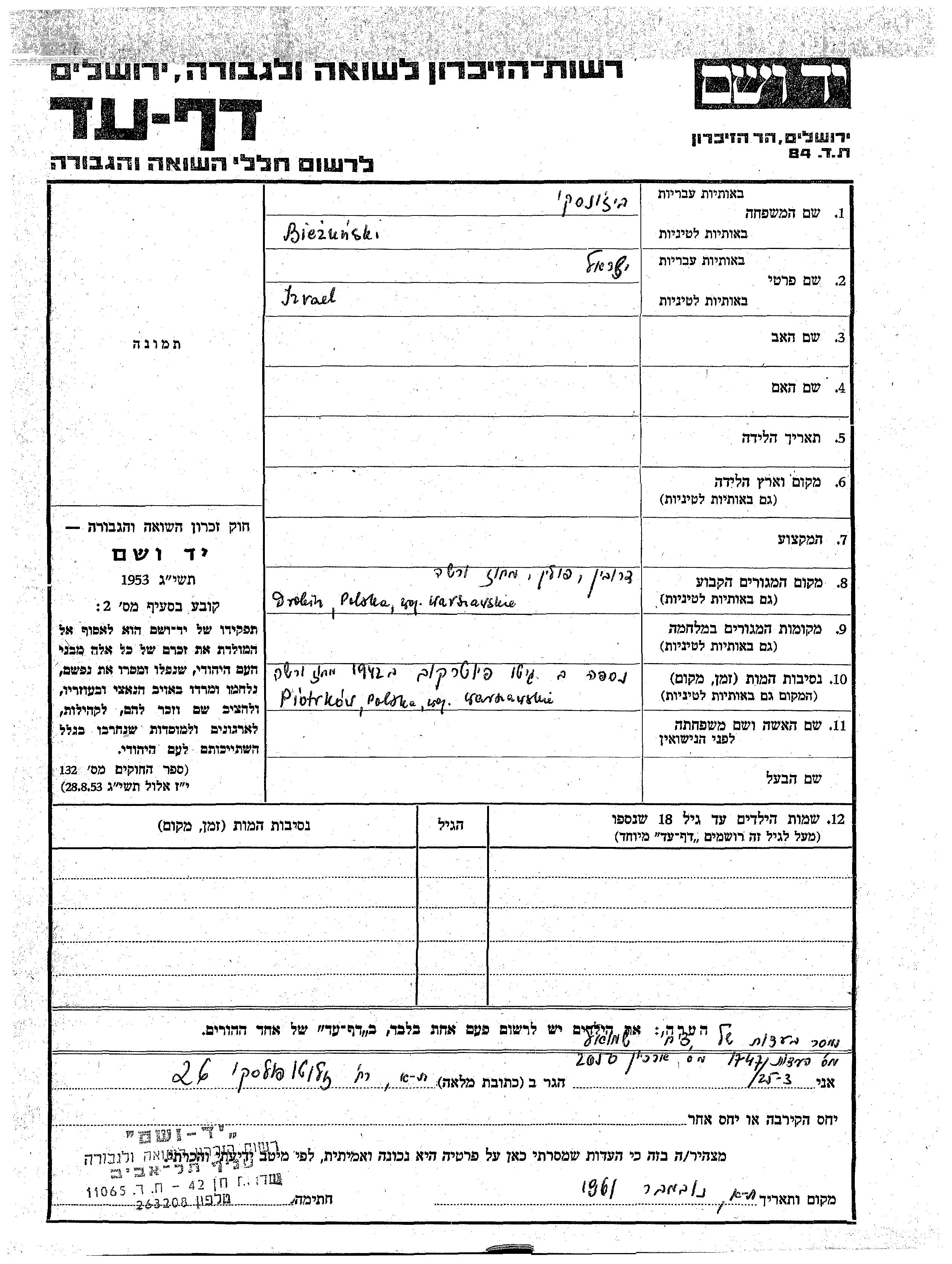 Yad Vashem - Pages of Testimony Names Memorial Collection