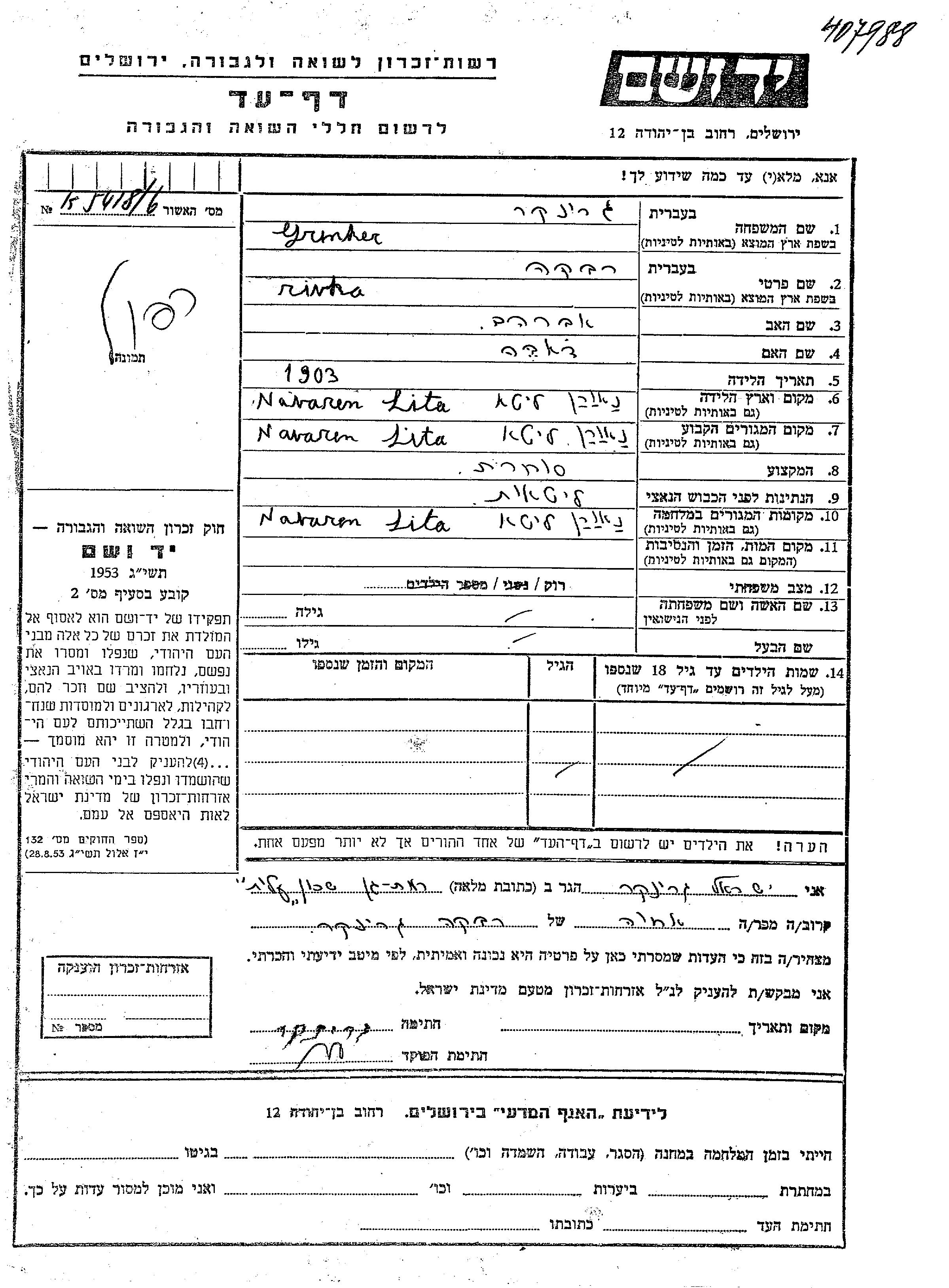 Yad Vashem - Pages of Testimony Names Memorial Collection