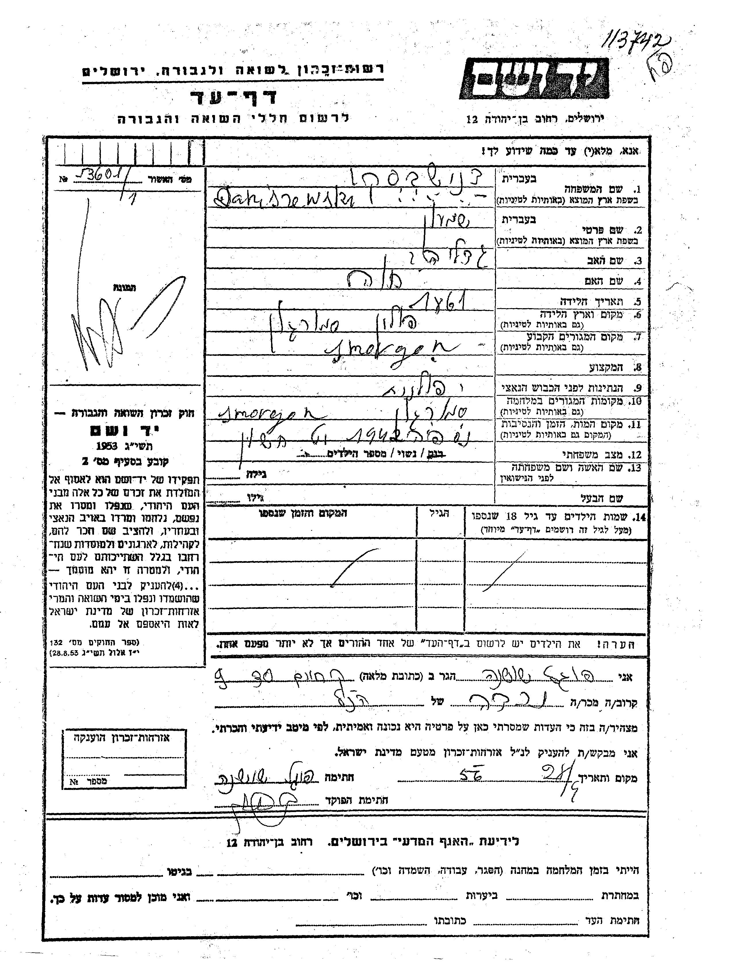 Shimon Daniszewski was born in Smorgon, Poland, 1861 to Gedalia and Khava. He was married. Prior to WWII he lived in Smorgon, Poland. During the war he was in Smorgon, Poland.