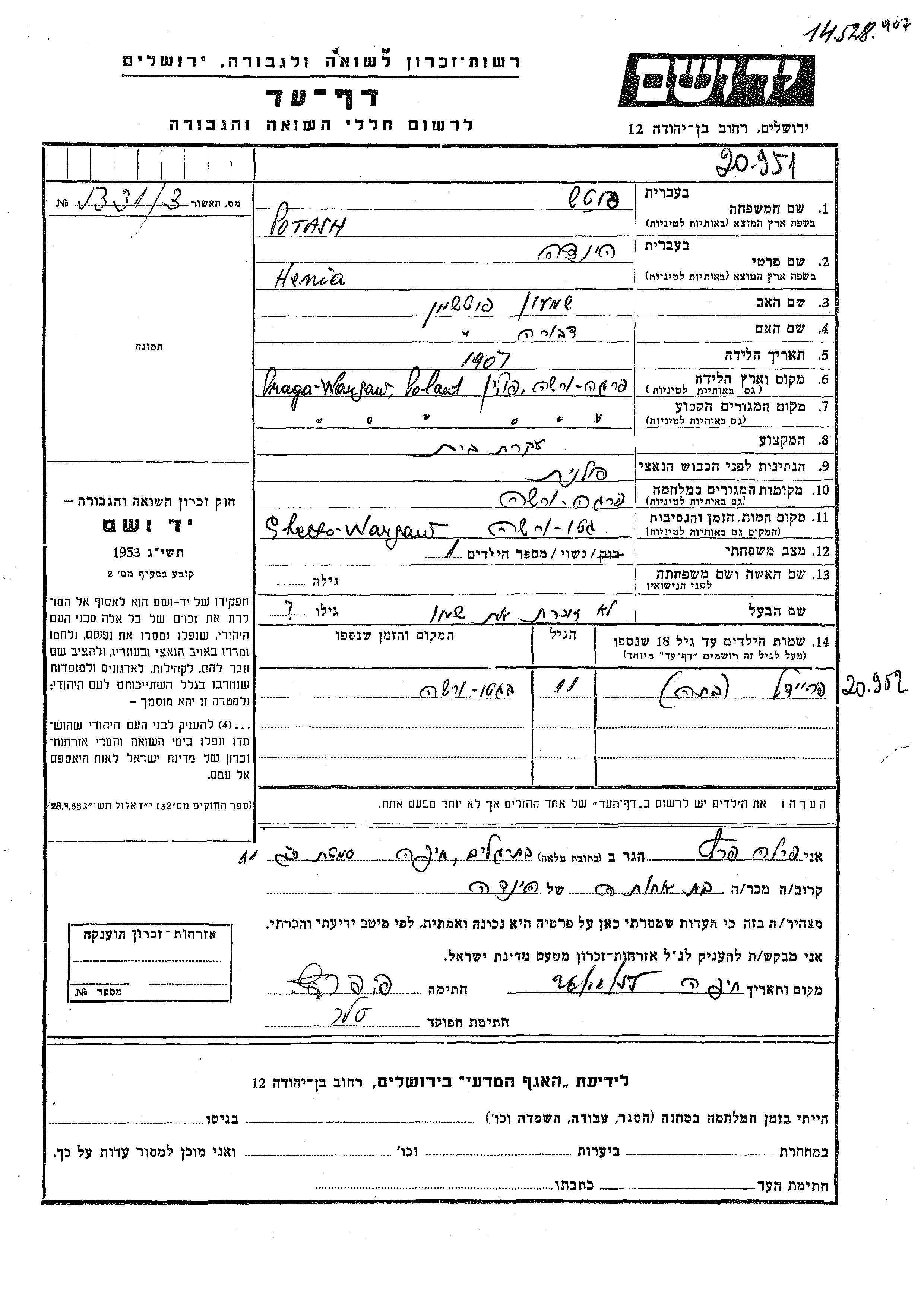 | Potash | Hinda | 1909 | Warszawa, Poland | Page of Testimony |