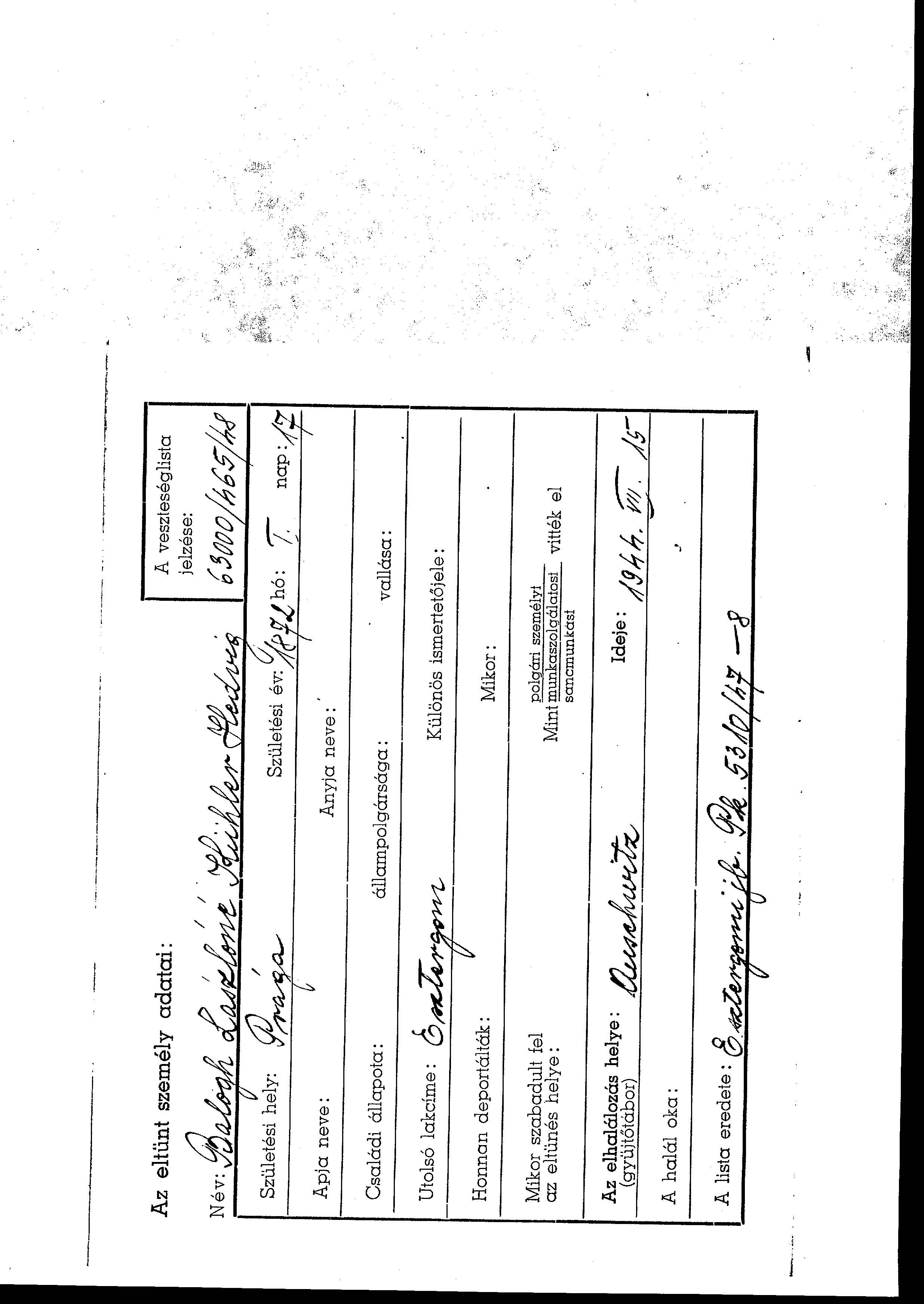 Hedvig Balogh nee Kuehler was born in Praga Warszawa, Poland, 1872. She was married to Laszlo. Prior to WWII she lived in Esztergom, Hungary. During the war she was in Auschwitz, Poland. Hedvig was murdered in the Shoah. Place of death: Auschwitz, Poland, 15/07/1944.