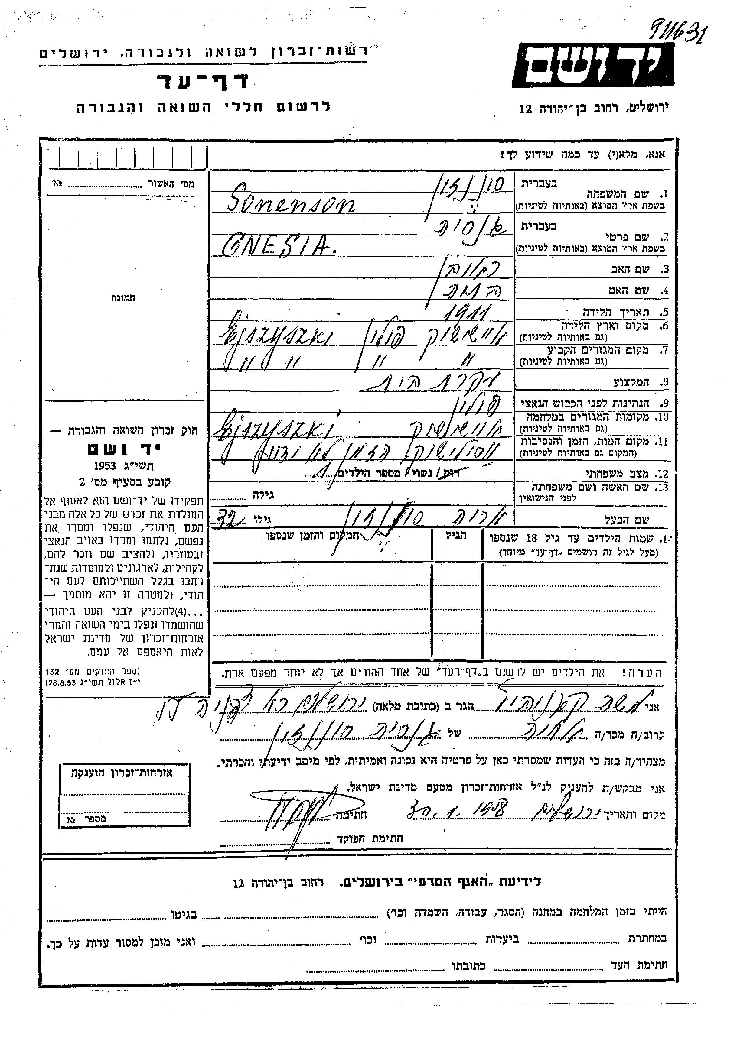 Yad Vashem - Pages of Testimony Names Memorial Collection