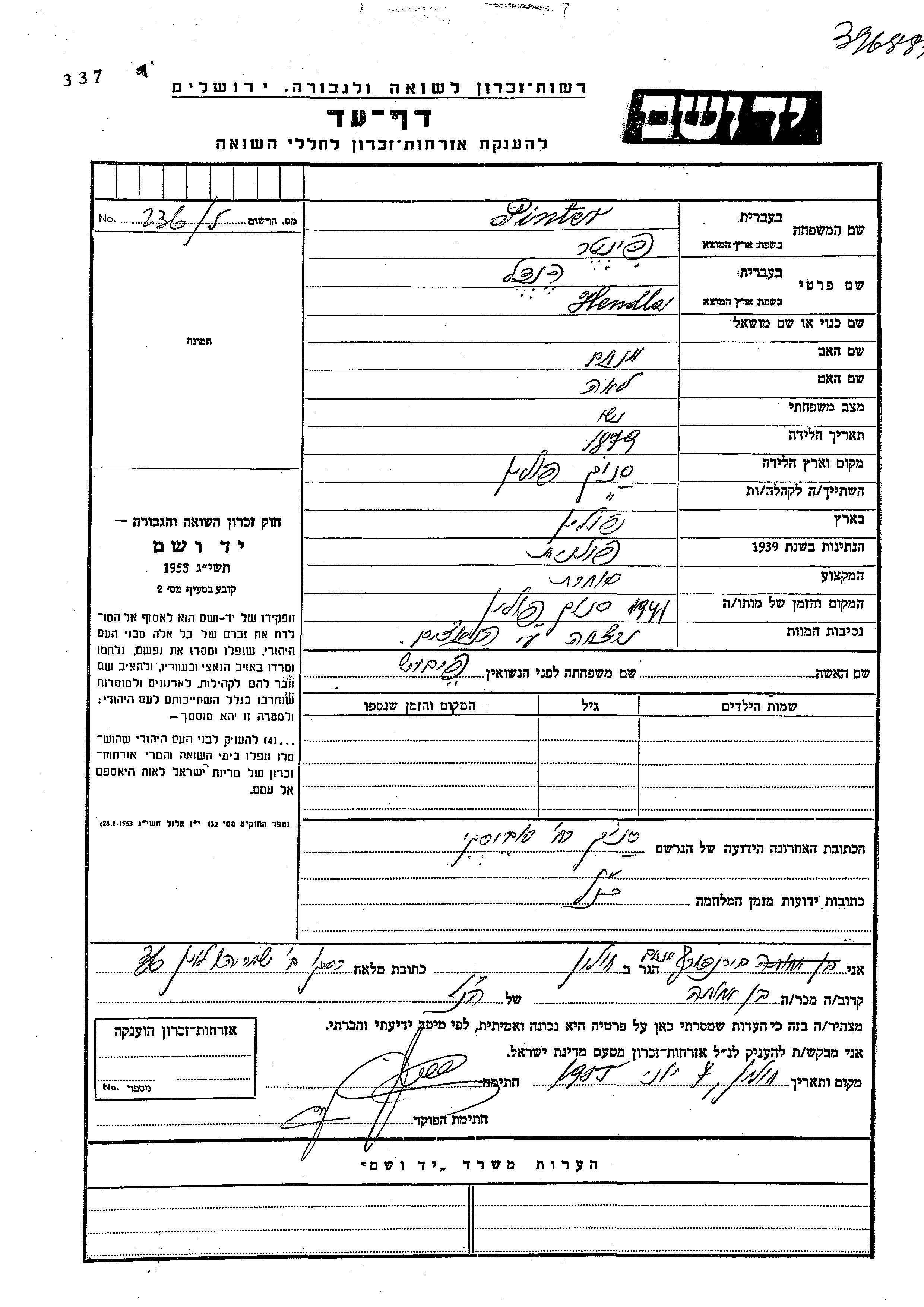 During the Shoah, Jews were murdered in a variety of ways, among them gassing, shooting, burning, drowning or burial alive, exhaustion through forced labor, starvation, epidemic diseases, deprivation of medical care and minimal hygienic conditions, and more. Some Jews took their own lives in order to escape arrest and further persecution, or to end their hopeless, relentless suffering.