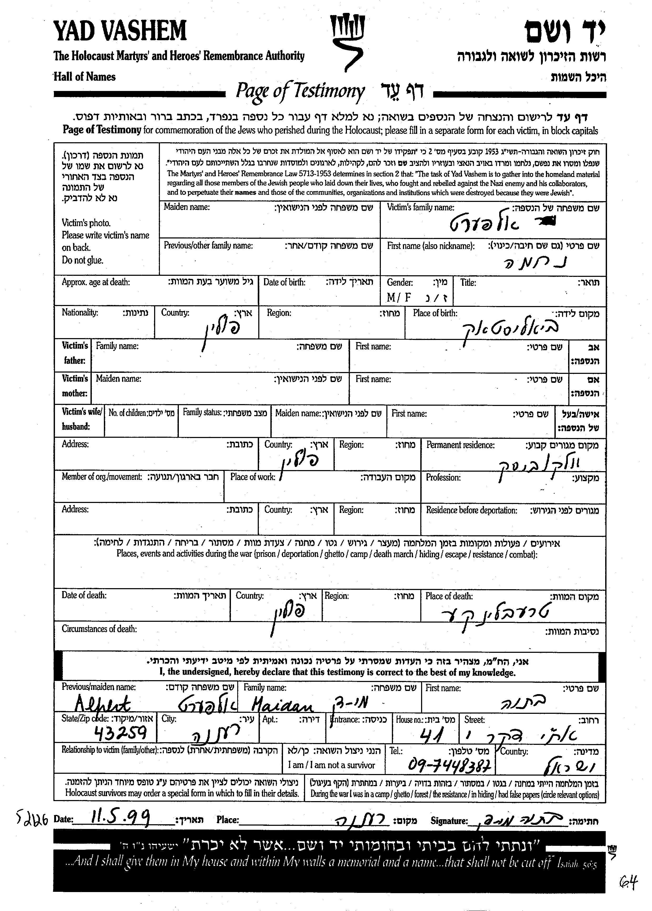 Yad Vashem - Pages of Testimony Names Memorial Collection