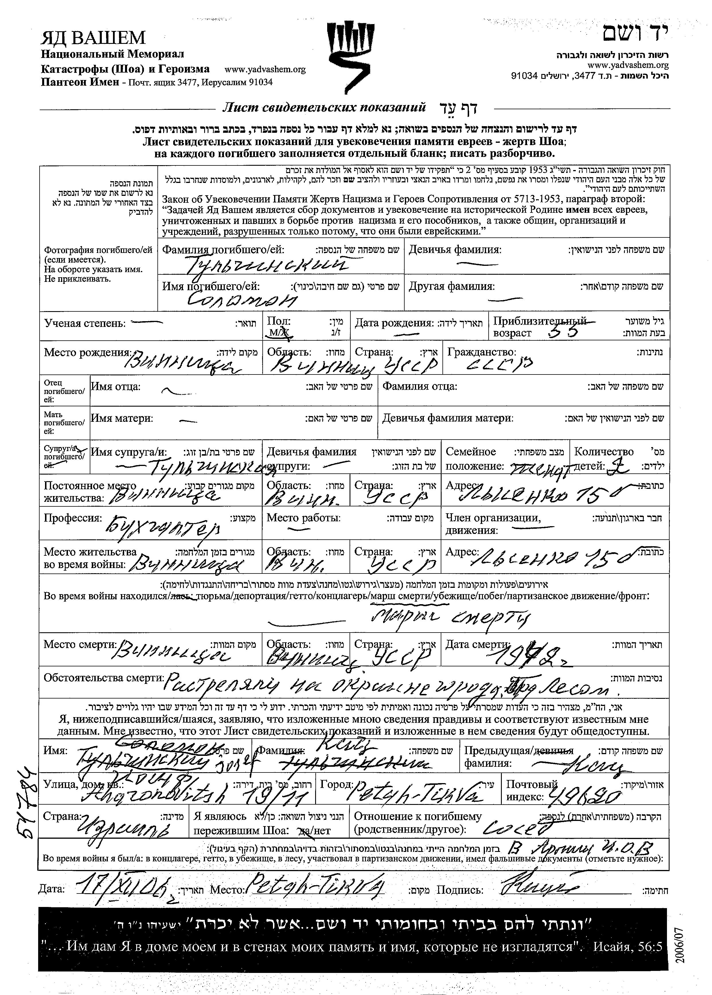 Yad Vashem - Pages of Testimony Names Memorial Collection
