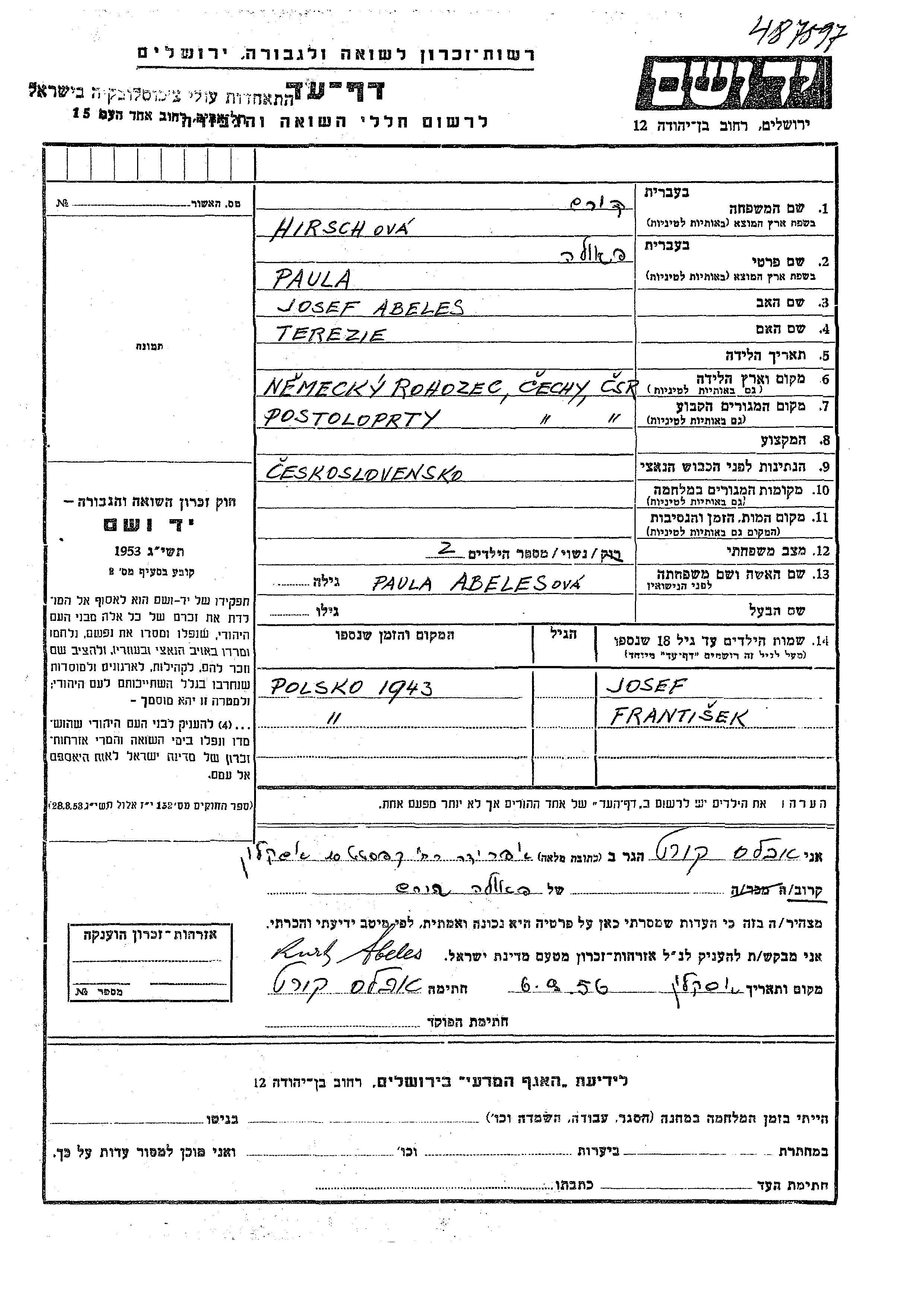 | Hirschova | Paula | Postoloprty, Czechoslovakia | Page of Testimony | |