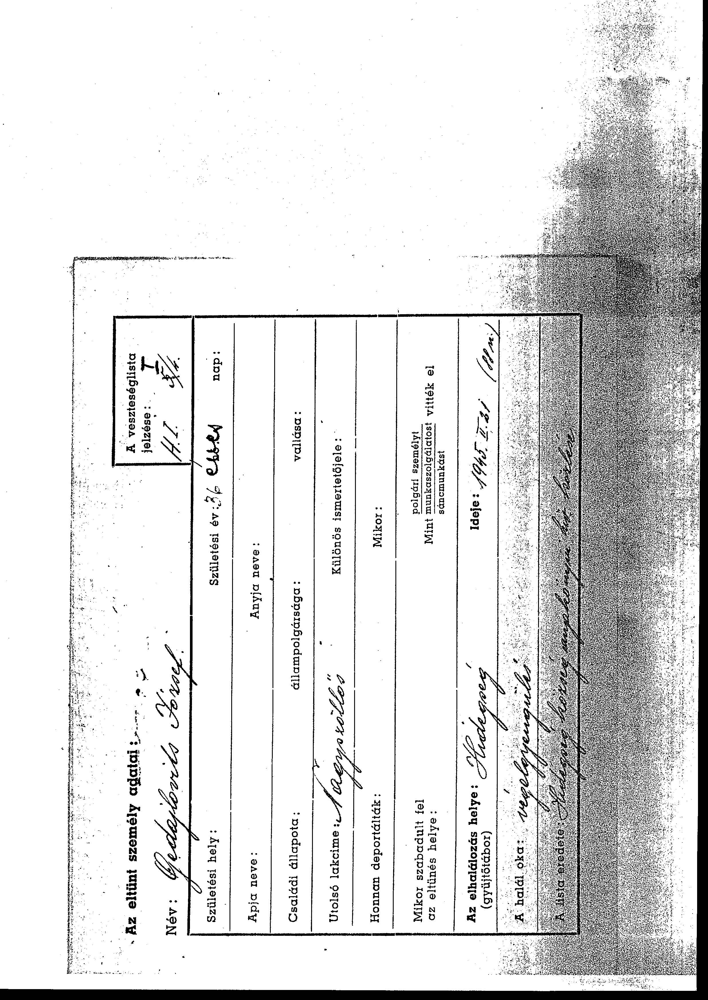 Search by name of Prewar permanent residence, Town, Village, District, Region or Country.