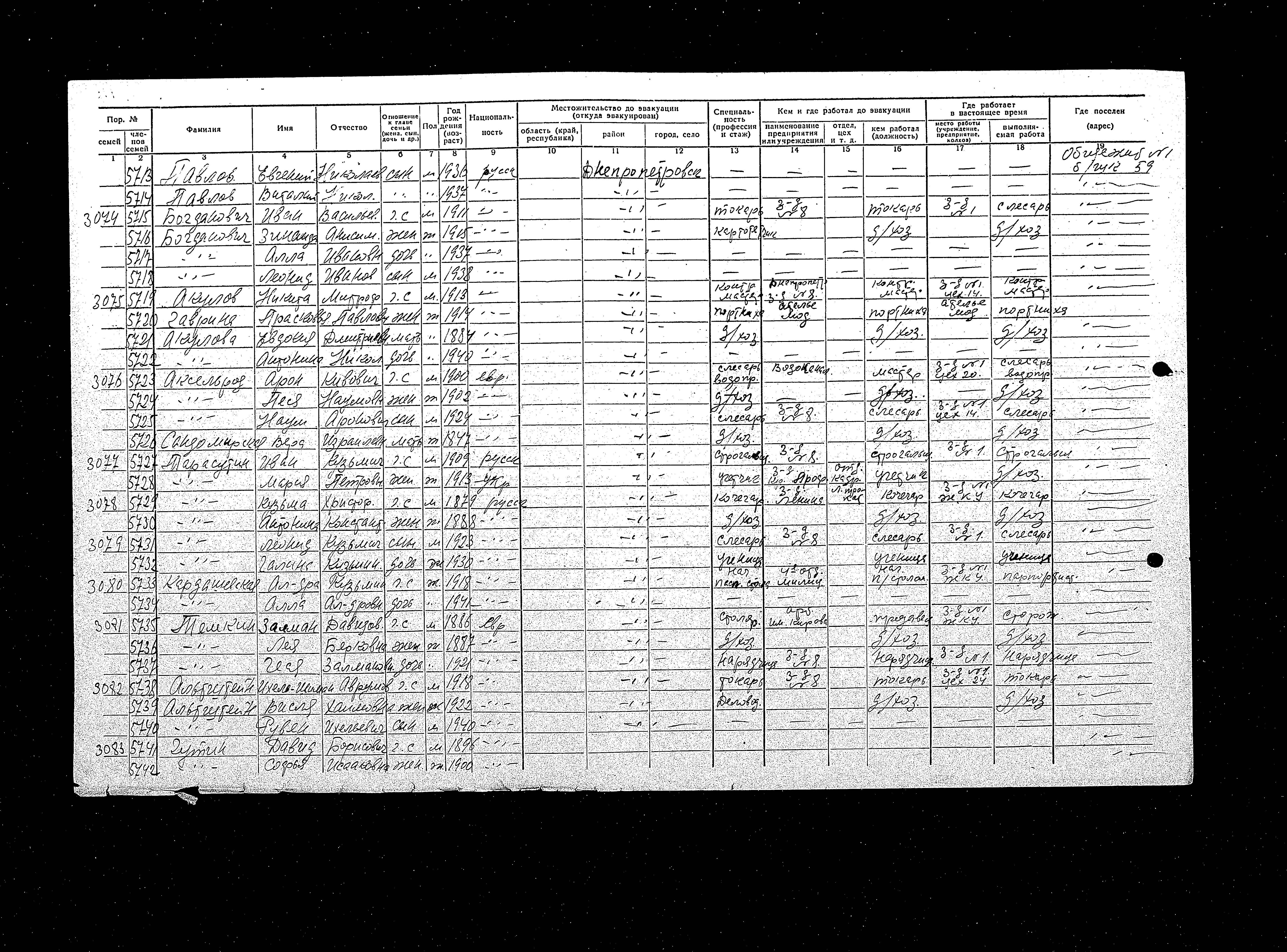 Was Registered Following the Evacuation/ in the Interior of the Soviet Union