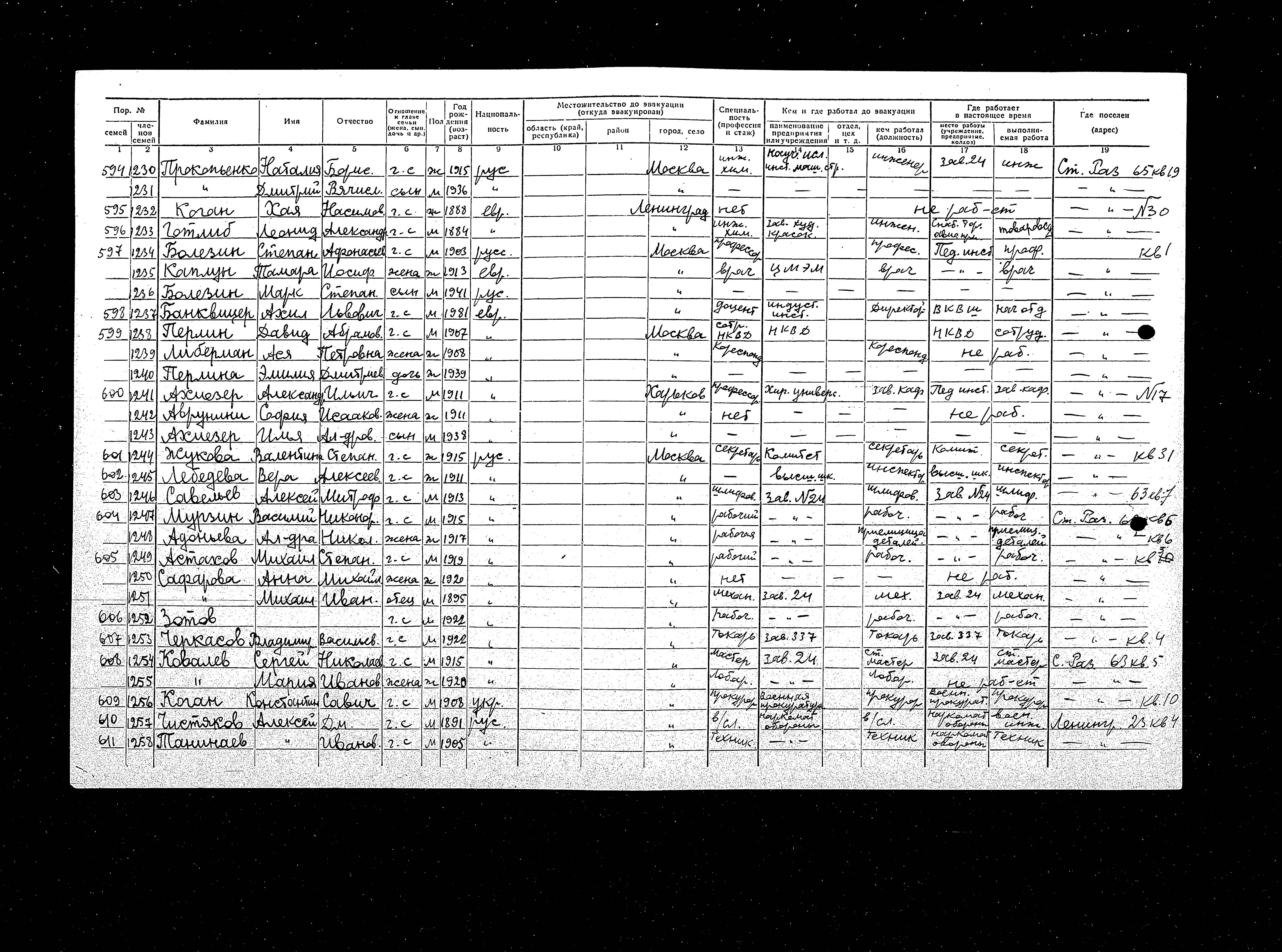 Akhiyezer Ilia 1938 Kharkov, Ukraine (USSR) List of evacuated persons
