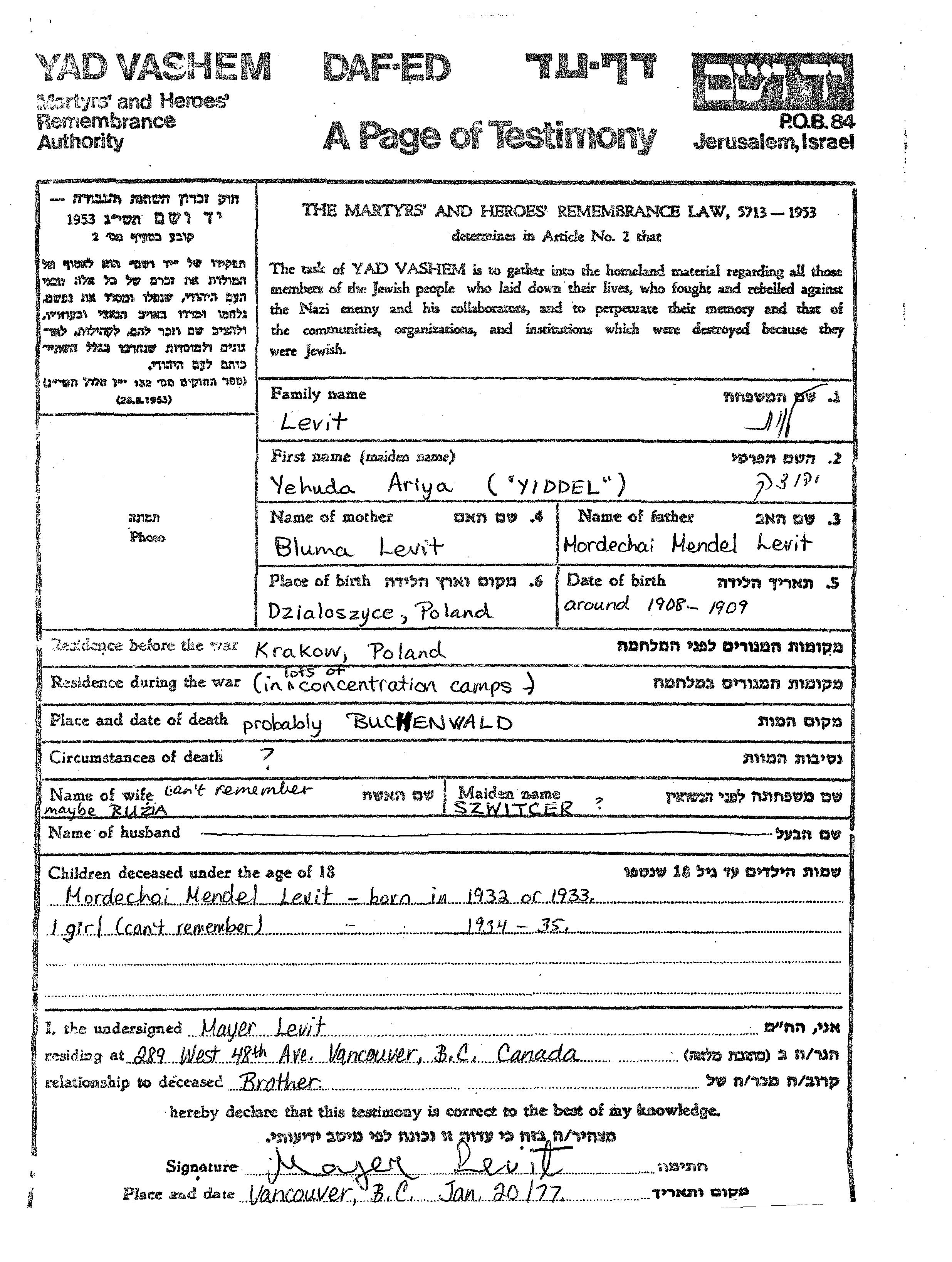 Search by last name of the submitter of the Page of Testimony, including diminutives or nicknames
