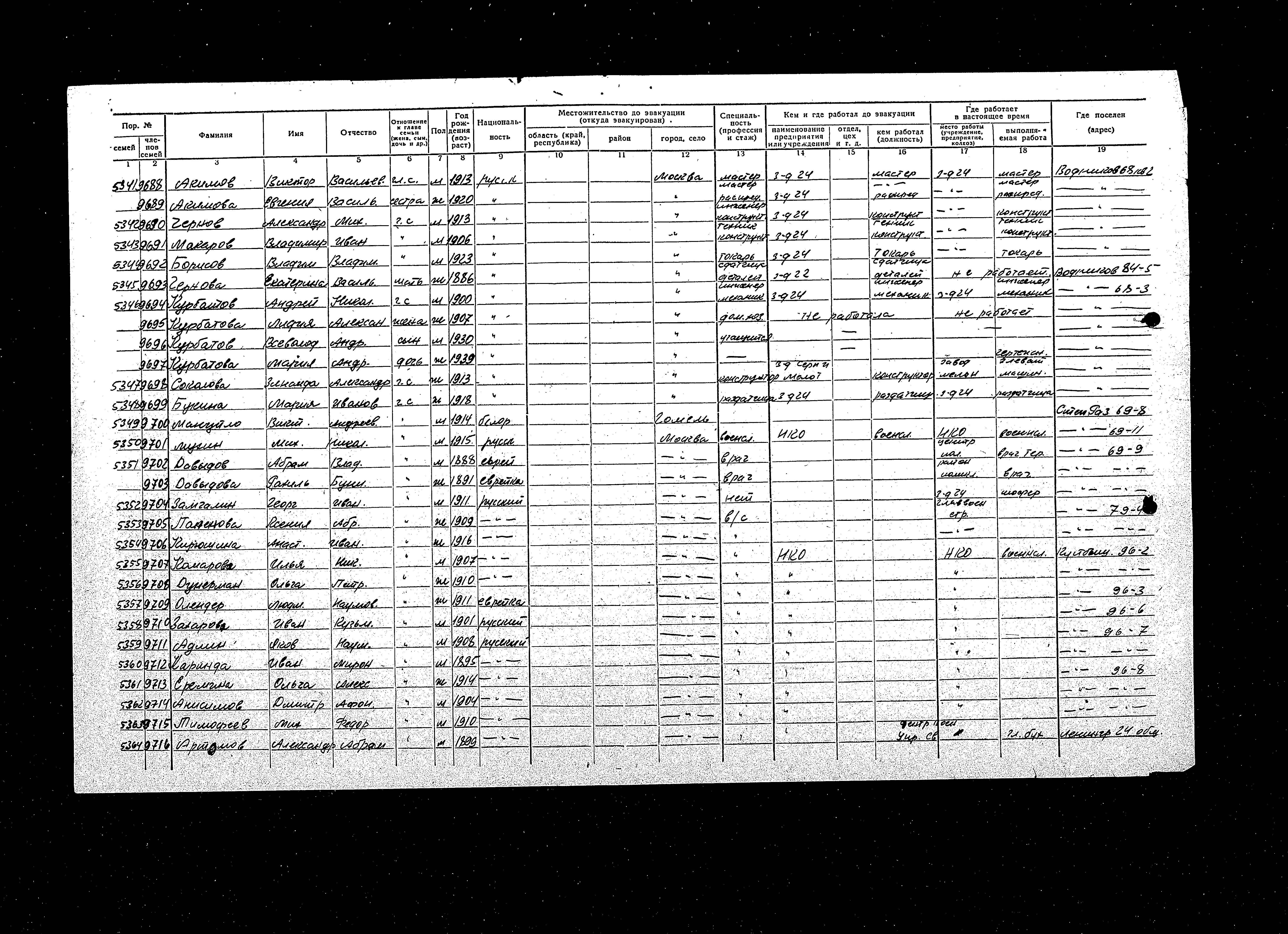 Adlin Yakov 1908 Moskva, Russia (USSR) List of evacuated persons