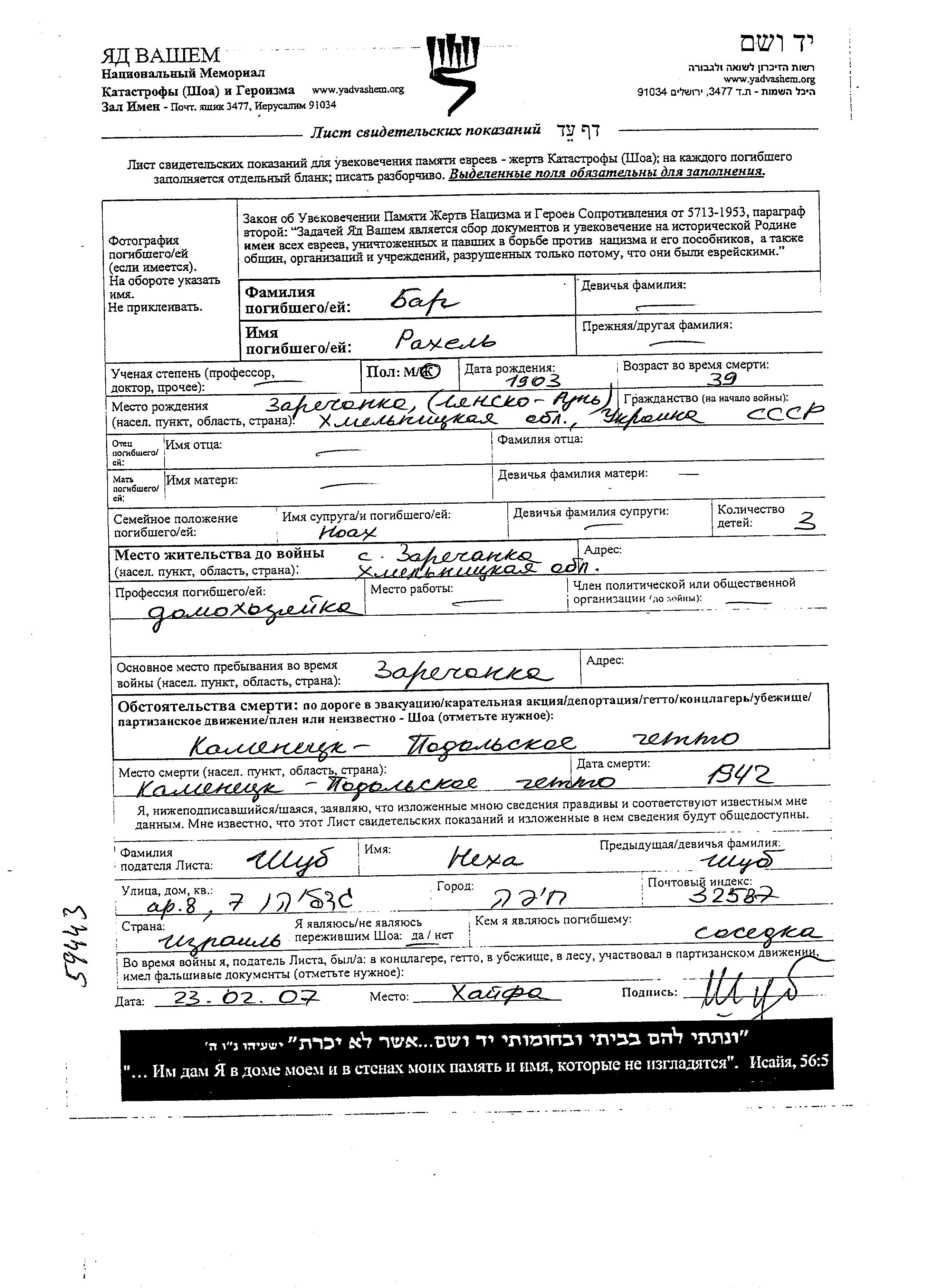 Search by last name of the submitter of the Page of Testimony, including diminutives or nicknames