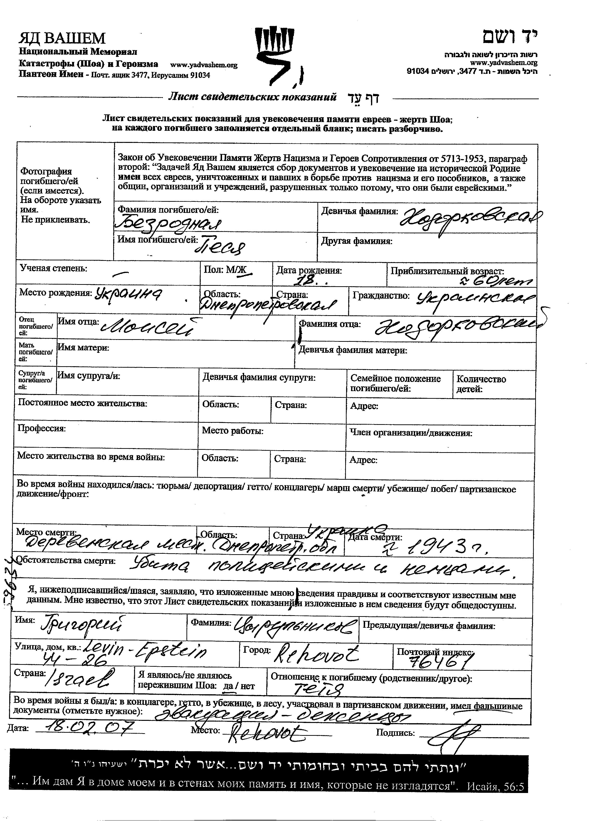 Search by last name of the submitter of the Page of Testimony, including diminutives or nicknames