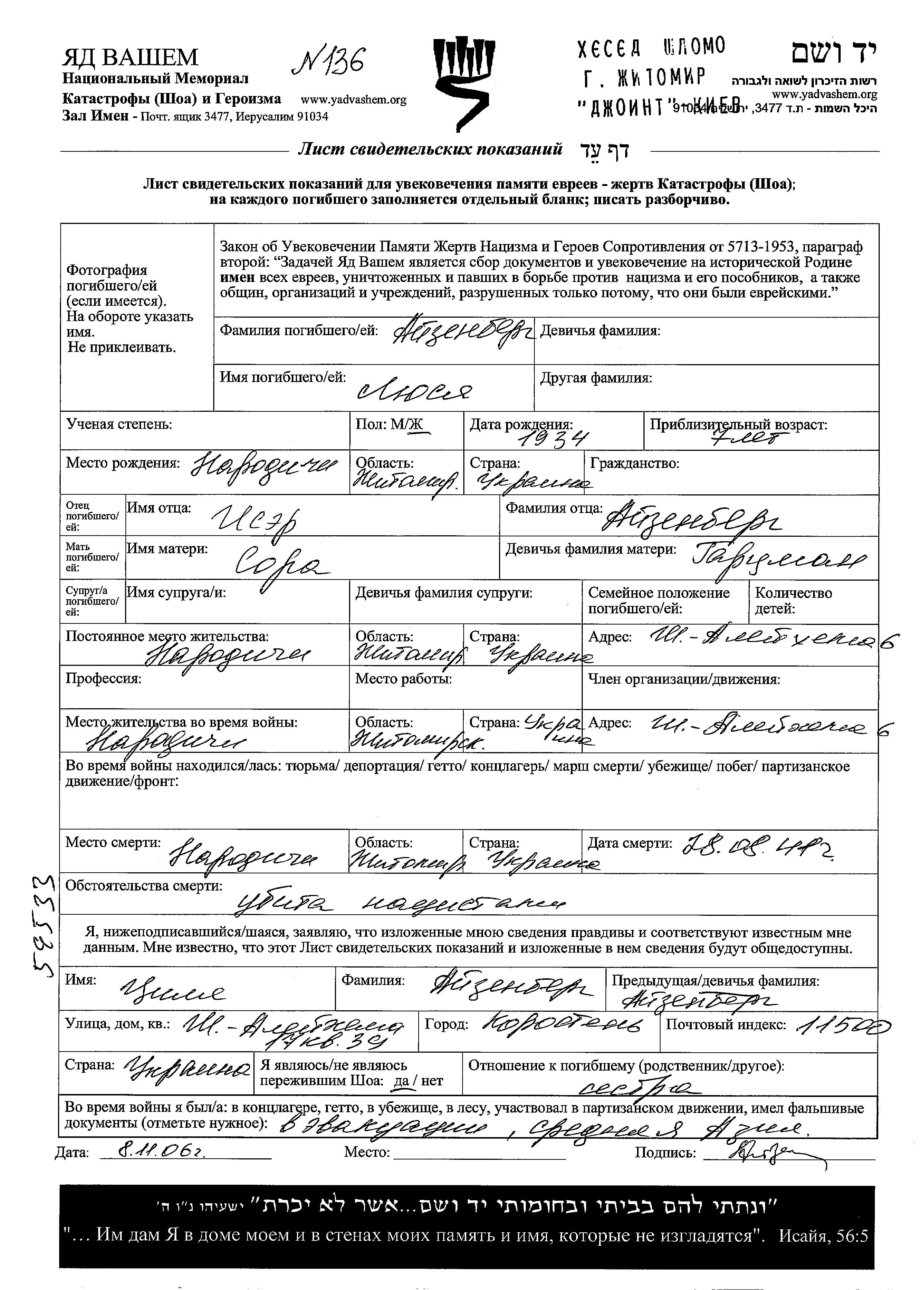 Yad Vashem - Pages of Testimony Names Memorial Collection