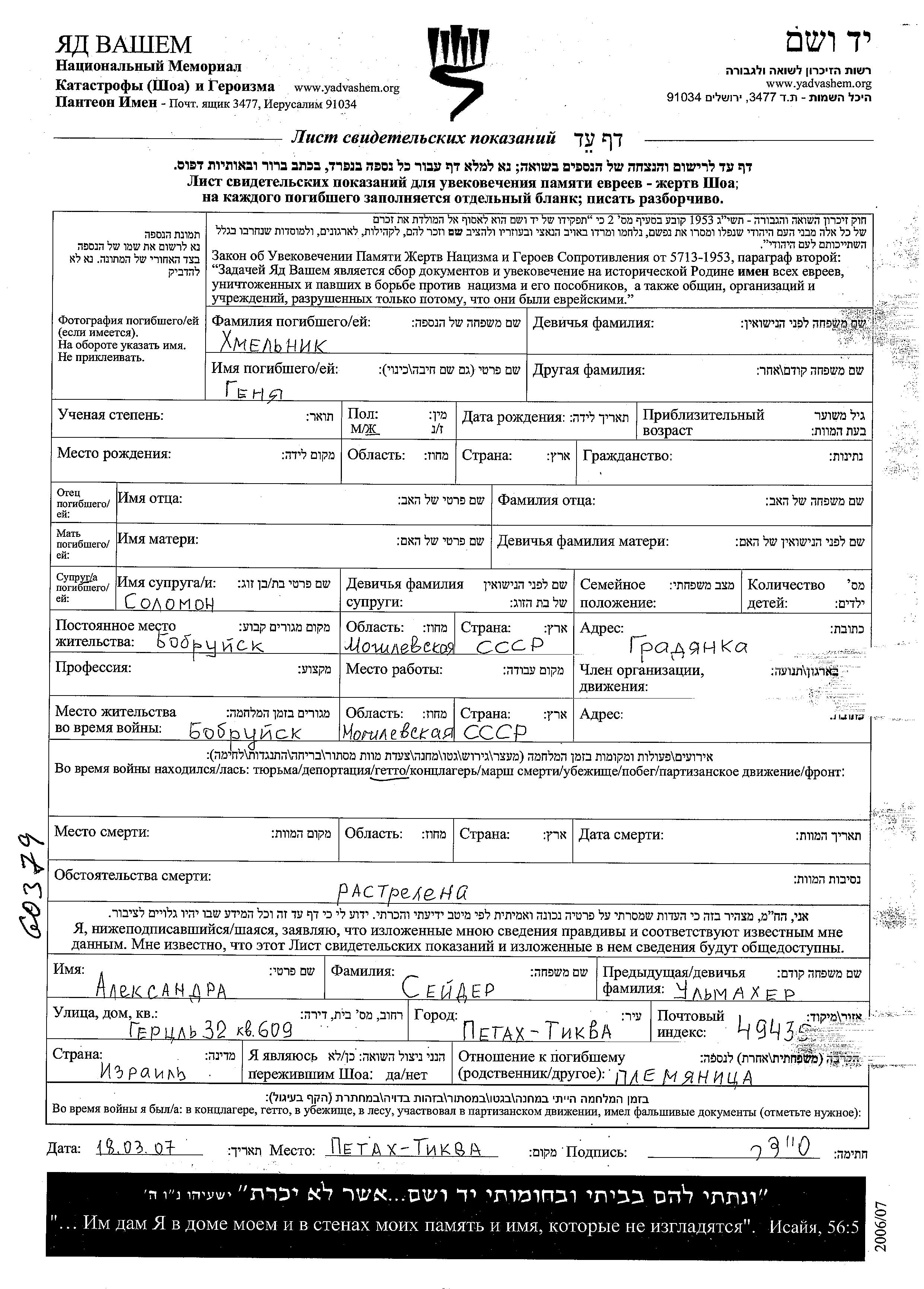Yad Vashem - Pages of Testimony Names Memorial Collection