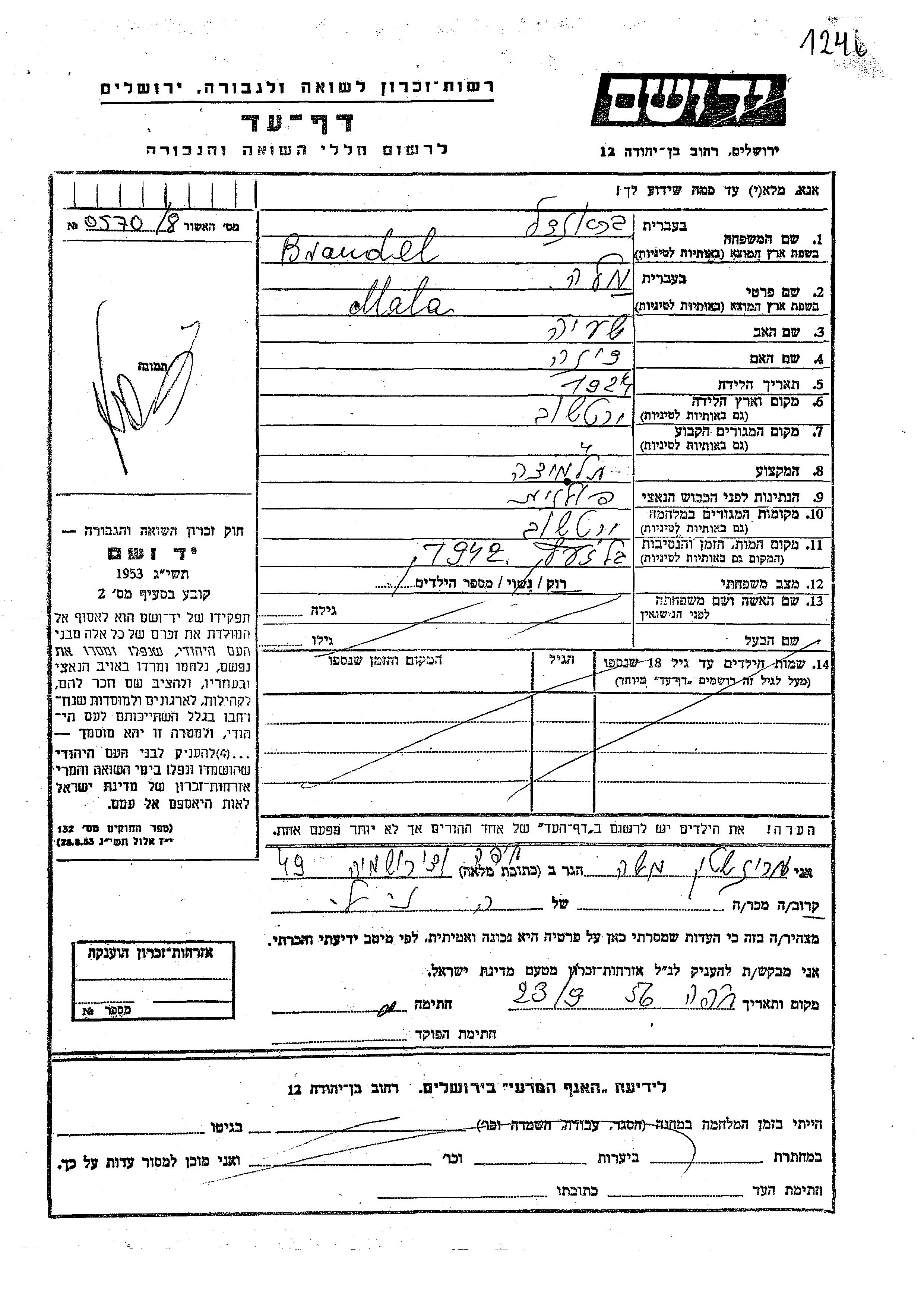 Brandel Mala 1924 Jarczow, Poland Page of Testimony