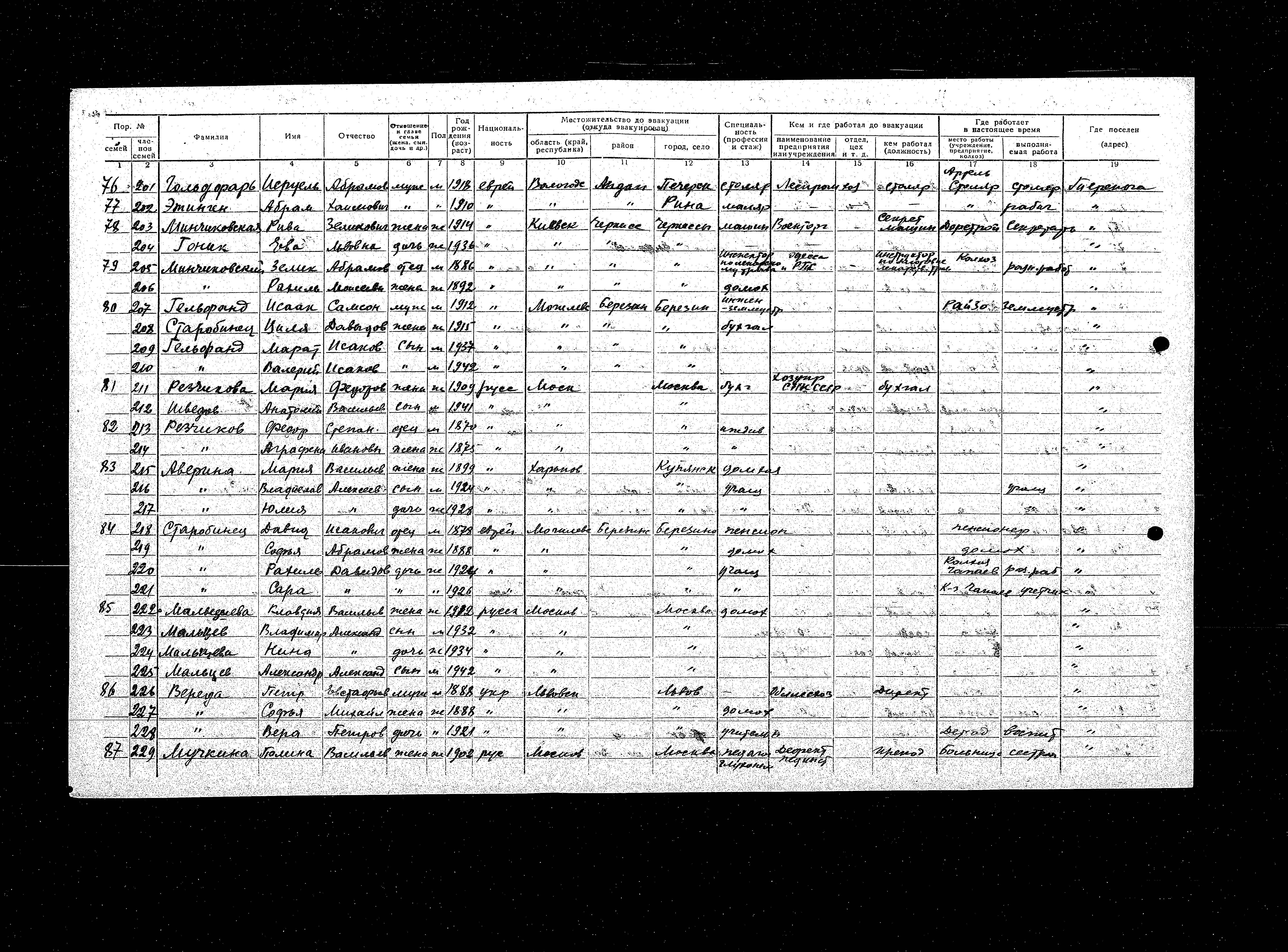 Starobinetz Sofya 1888 Berezin, Belorussia (USSR) List of evacuated persons