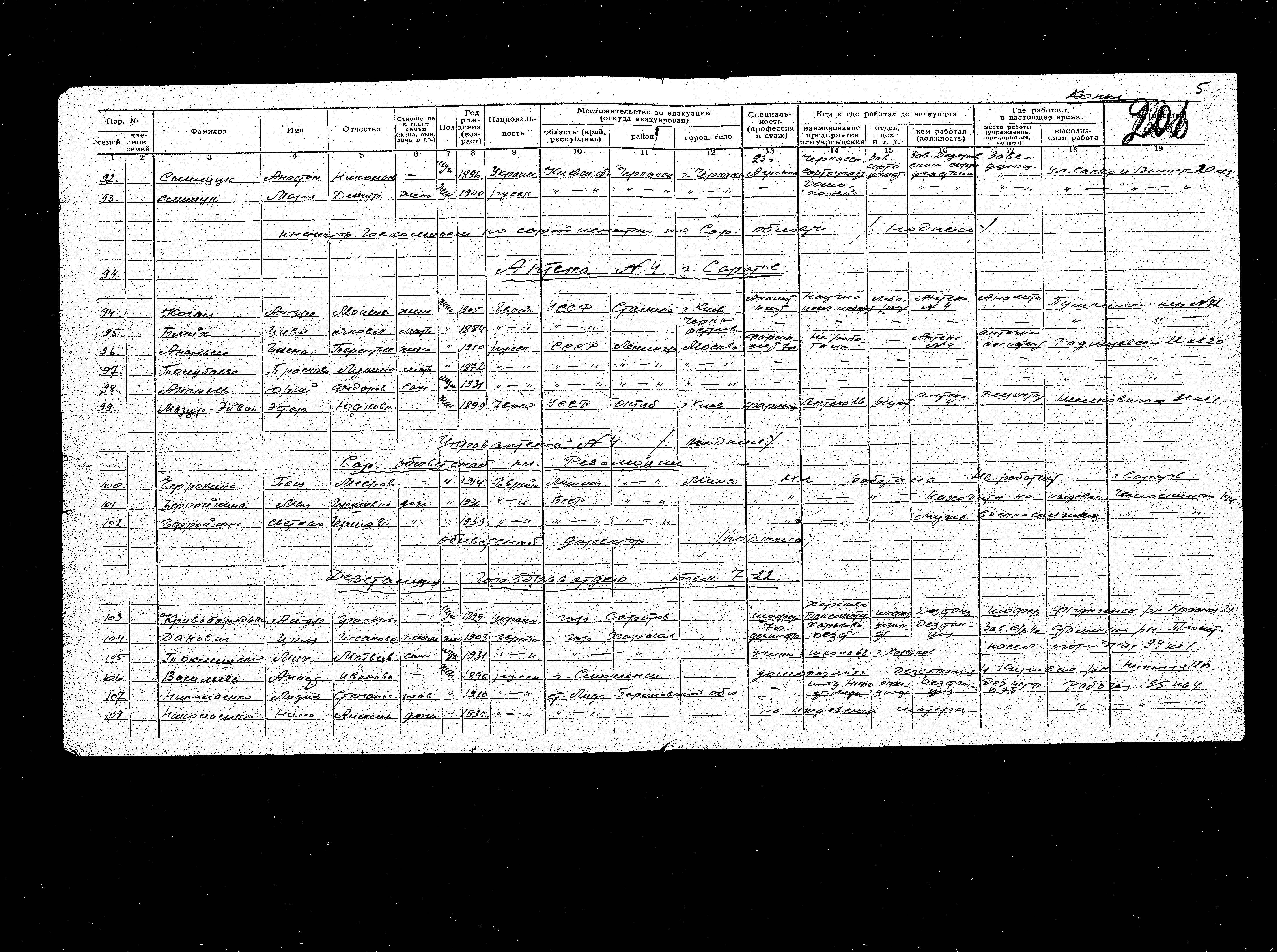 Was Registered Following the Evacuation/ in the Interior of the Soviet Union