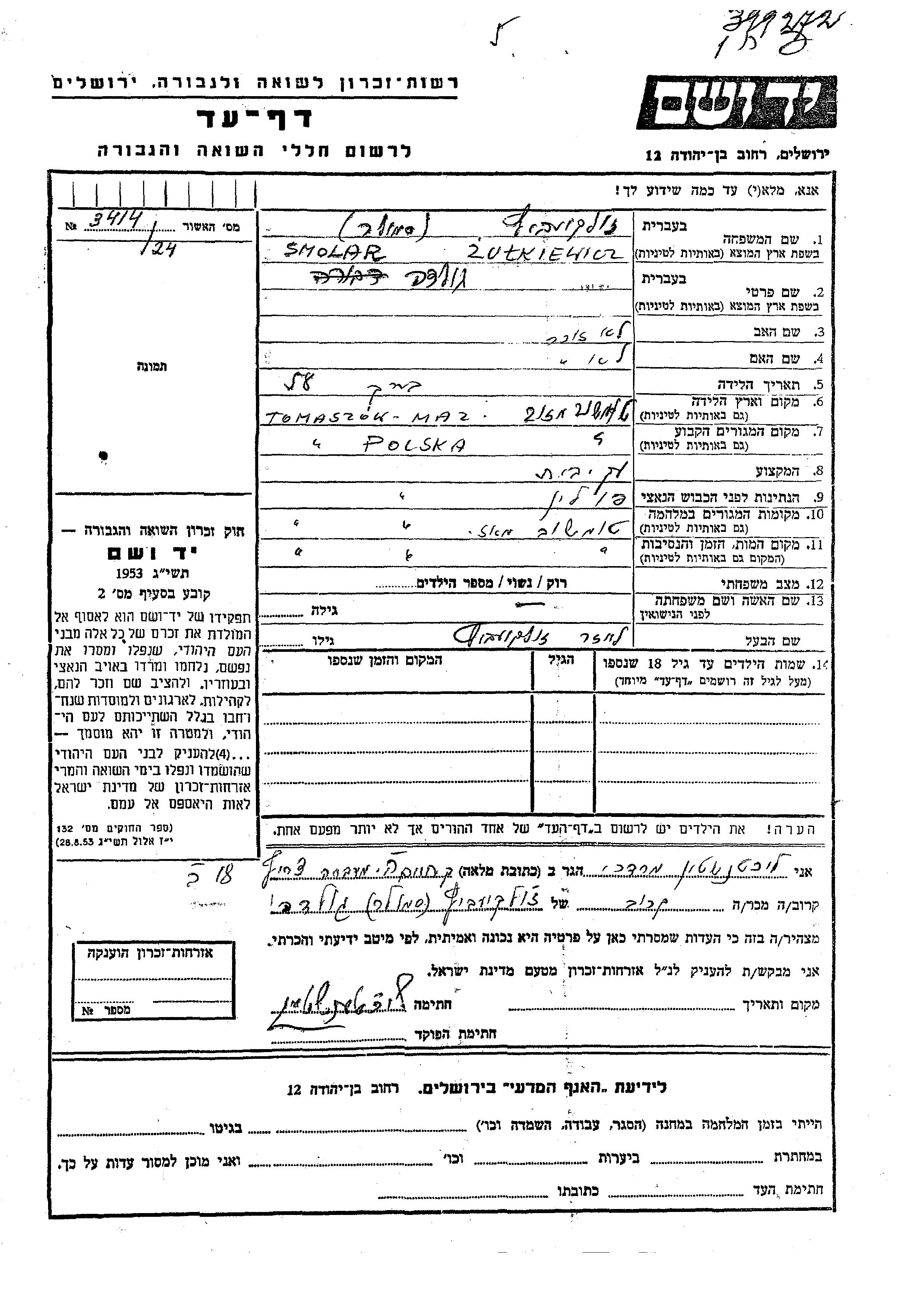Yad Vashem - Pages of Testimony Names Memorial Collection