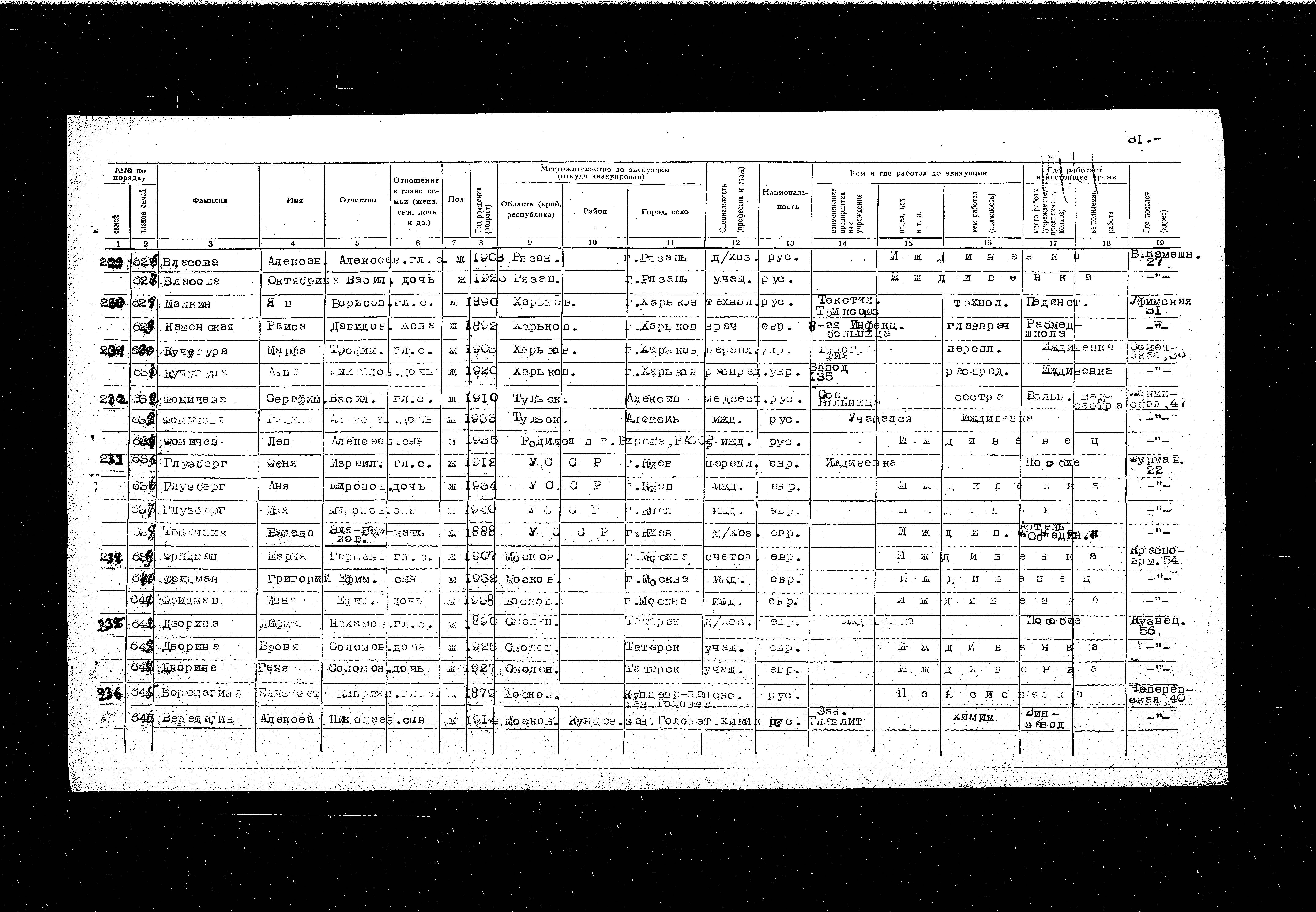 Was Registered Following the Evacuation/ in the Interior of the Soviet Union