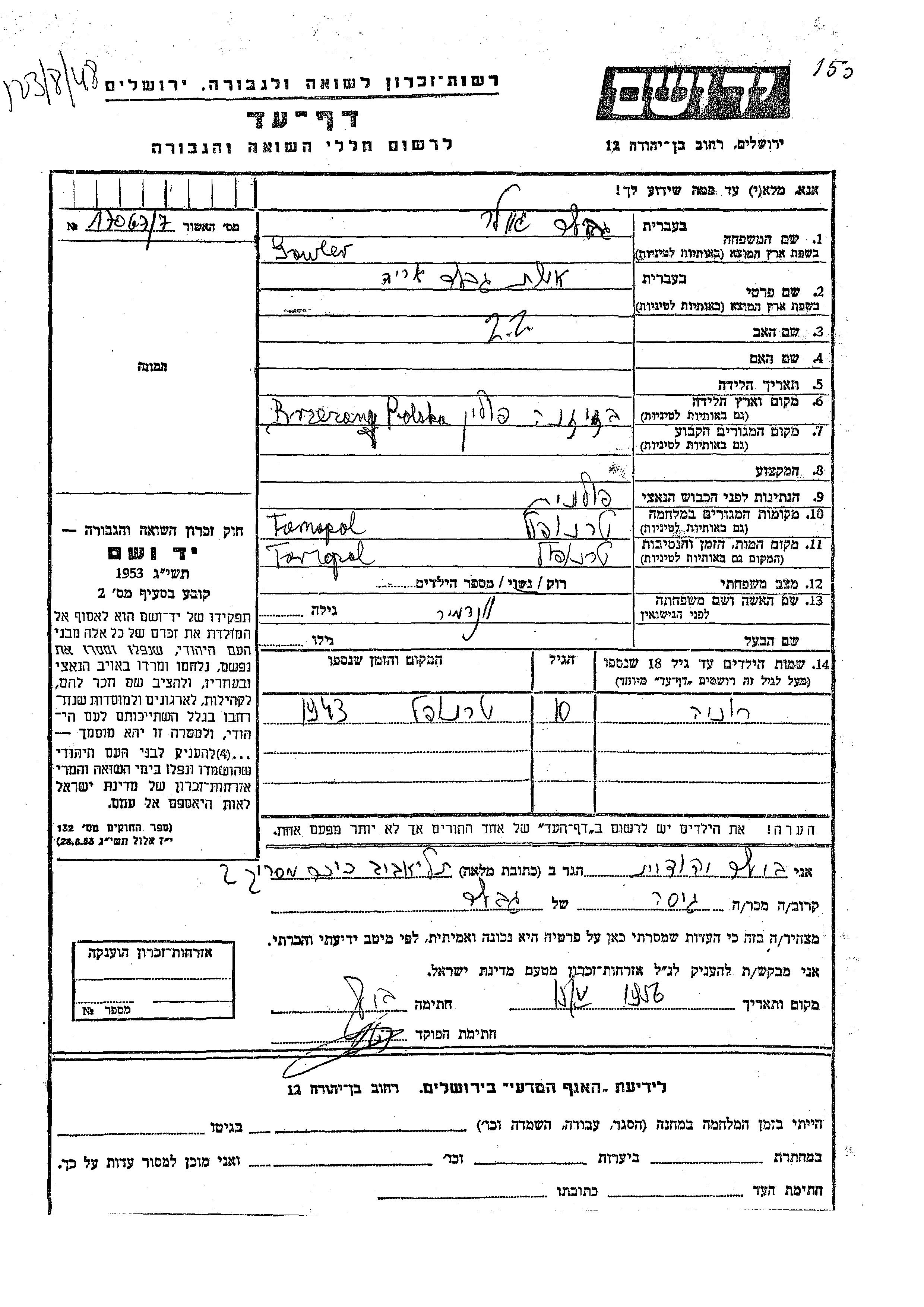 Yad Vashem - Pages of Testimony Names Memorial Collection