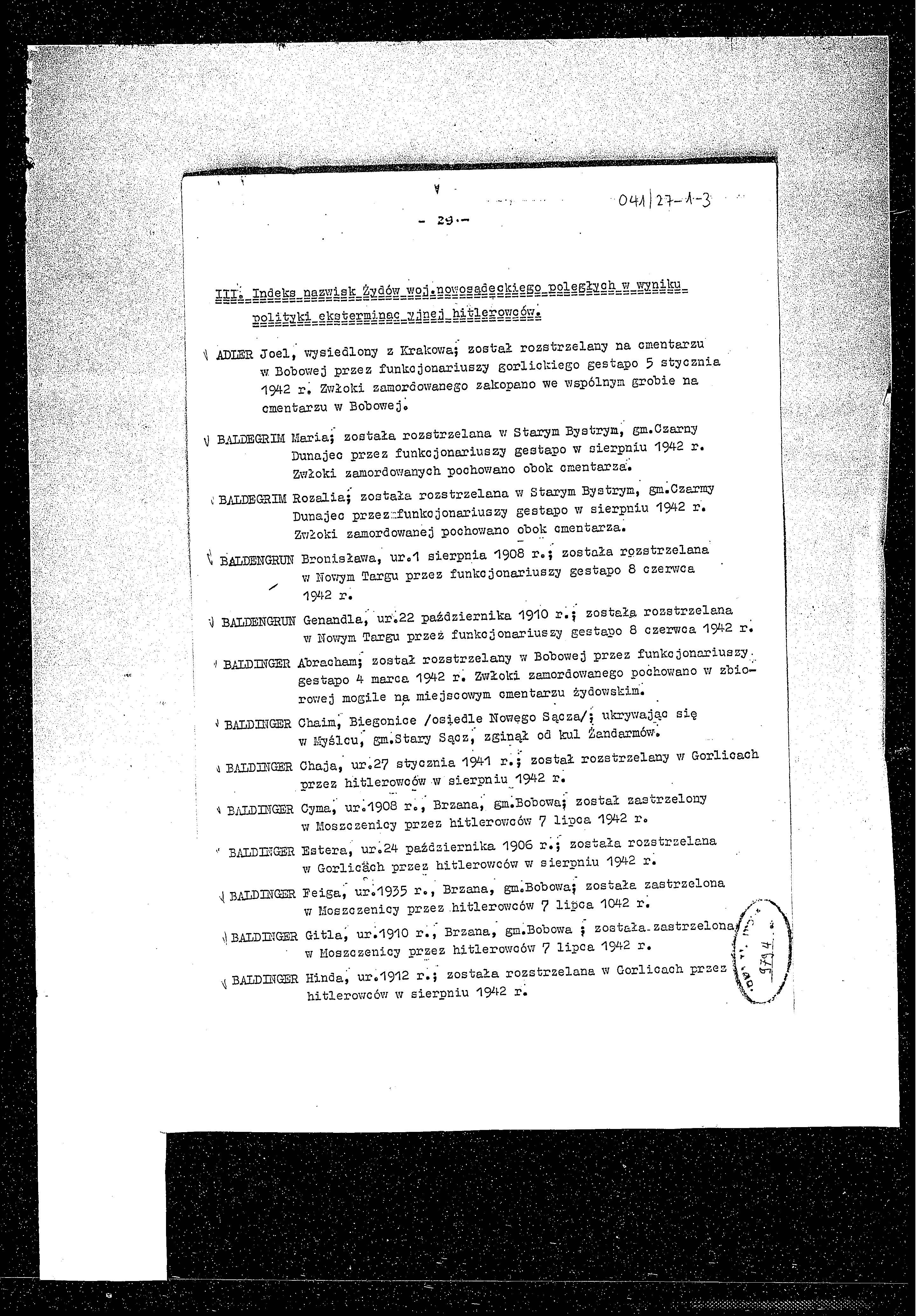 Baldinger Cyma 1908 Poland List of persecuted persons