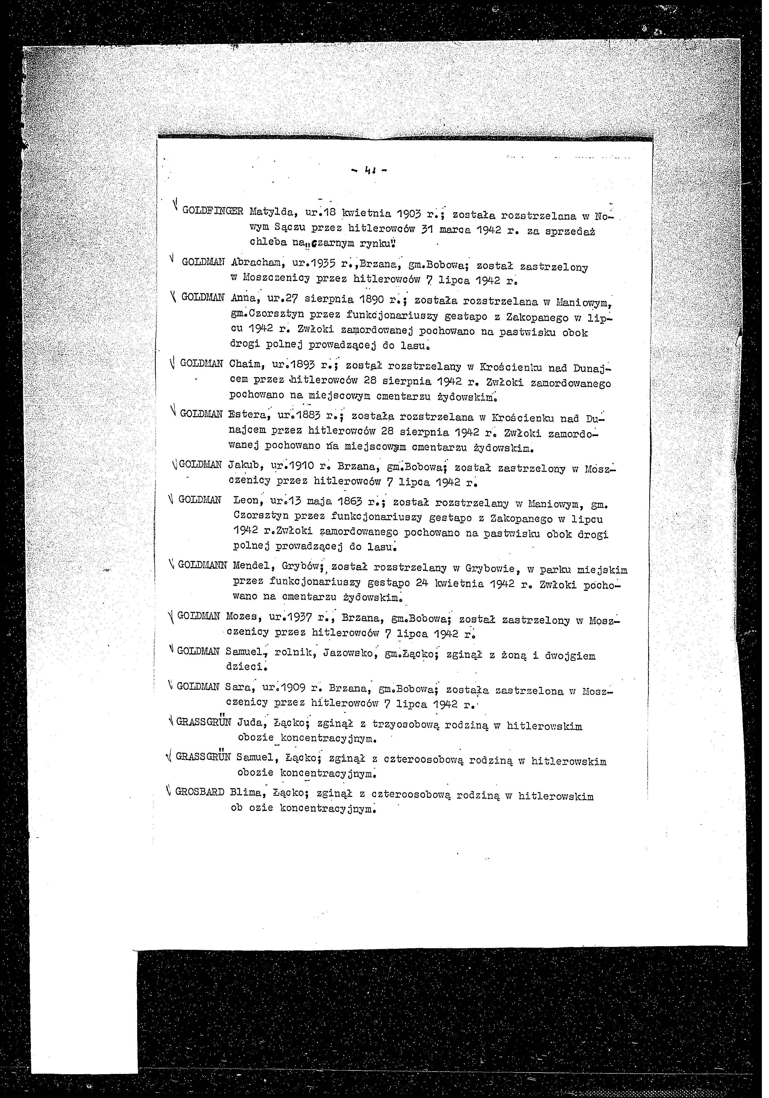 Jakub Goldman was born in Brzana, Poland, 1910. Prior to WWII he lived in Nowy Sacz, Poland.